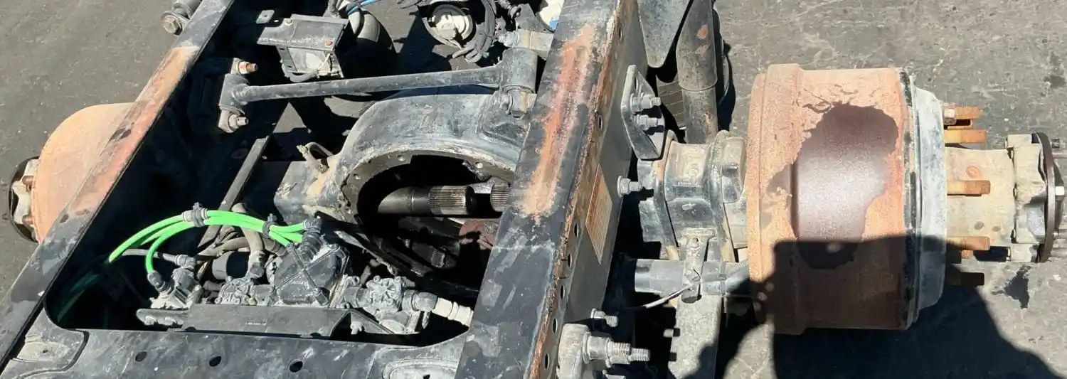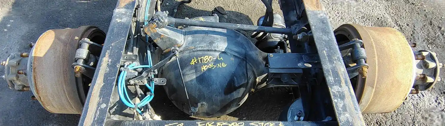 Used: Used Meritor Rear Axle Housing, RS23161, w/ Torque Rod Bracket, 10 Hole Pilot, Air Drum Brakes, ABS, 53.5" Inner Flange To Flange, STD Track. P/N RS23161NFNN159358, C323121K1857, S/N DRA13133921. Removed From 2014 Airliner Suspension. HOUSING ONLY, DIFF SOLD S