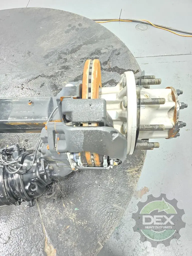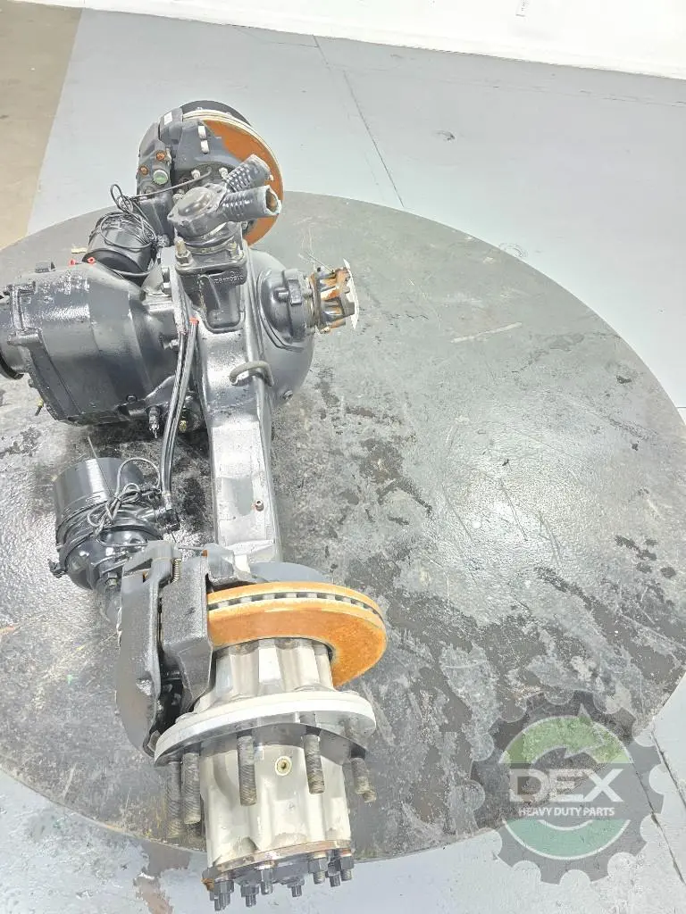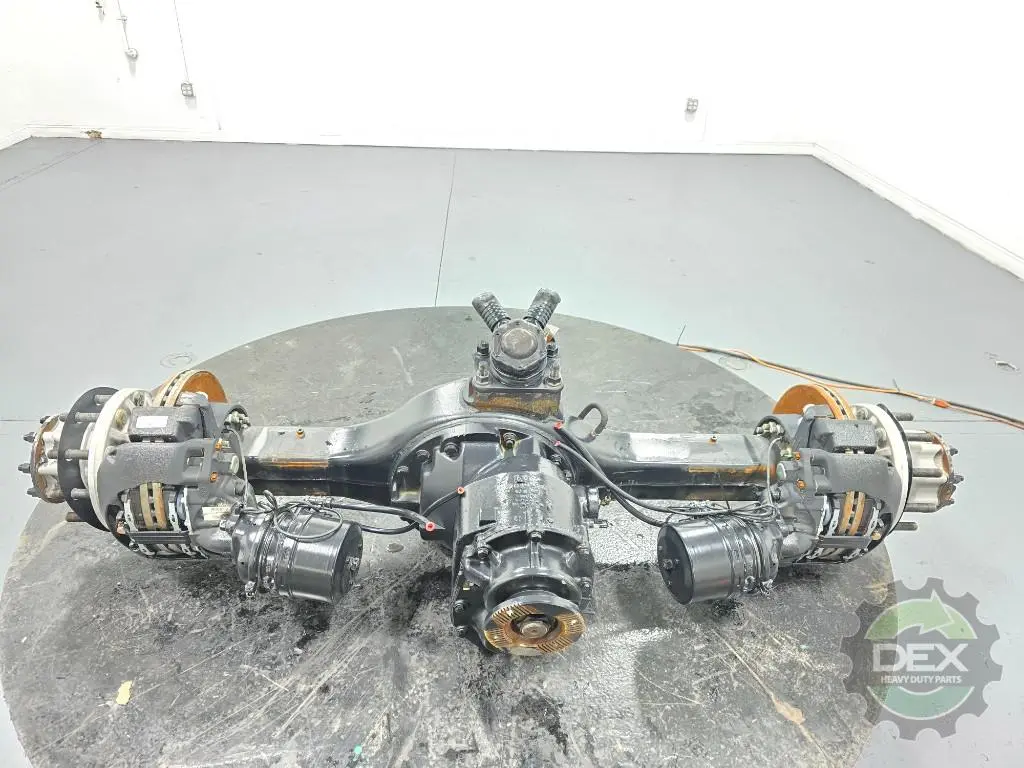 Recycled: Recycled Meritor Md2014E4HCRNN508-215 complete front rear axle, 2.15 ratio, power divider and diff lock, carrier 25816949, housing 24284261, setup for hub piloted aluminum wheels, ABS disc brakes, calipers 23675034 and 23675035, hubs 24112777, etc...