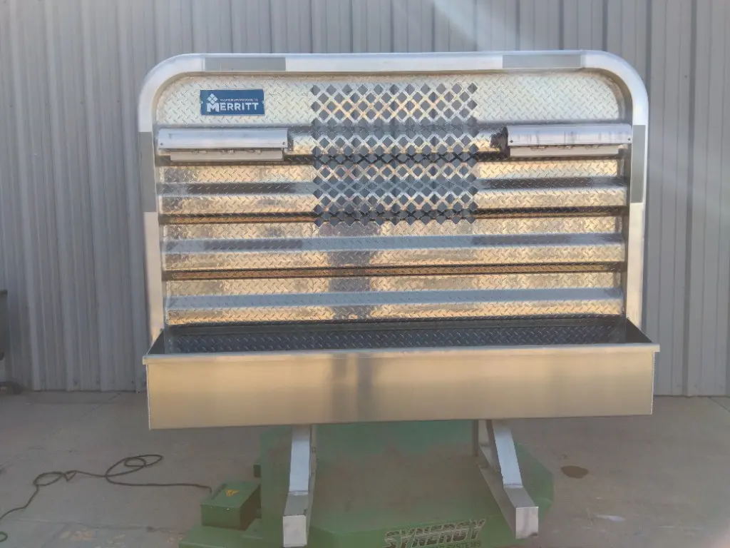 NEW: NEW HEADACHE RACK, DYNA-LIGHT W/RADIUS CORNERS, 68" X 80", EZ VIEW WINDO, 2 CHAIN RACKS AND A FULL TRAY.
