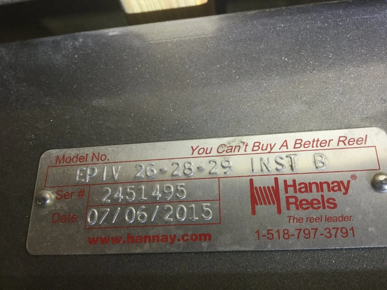 USED: USED HANNAY ELECTRIC HOSE REEL MODEL #EPIV 26-28-29, HAS AIR OPPERATED BRAKE