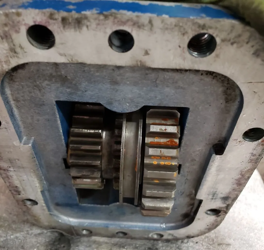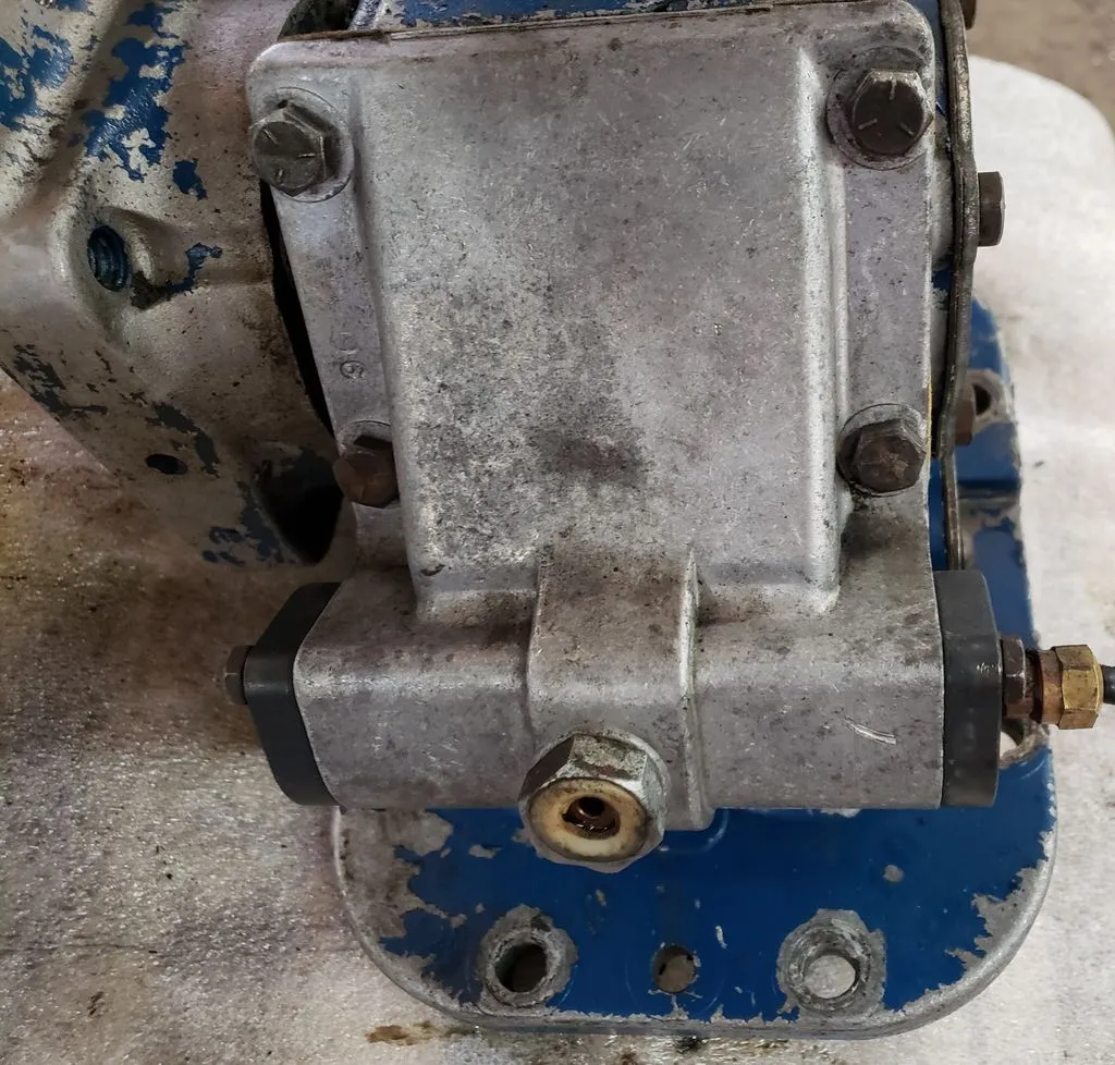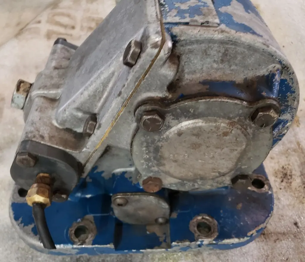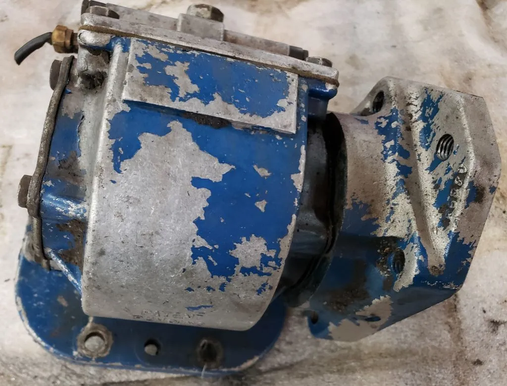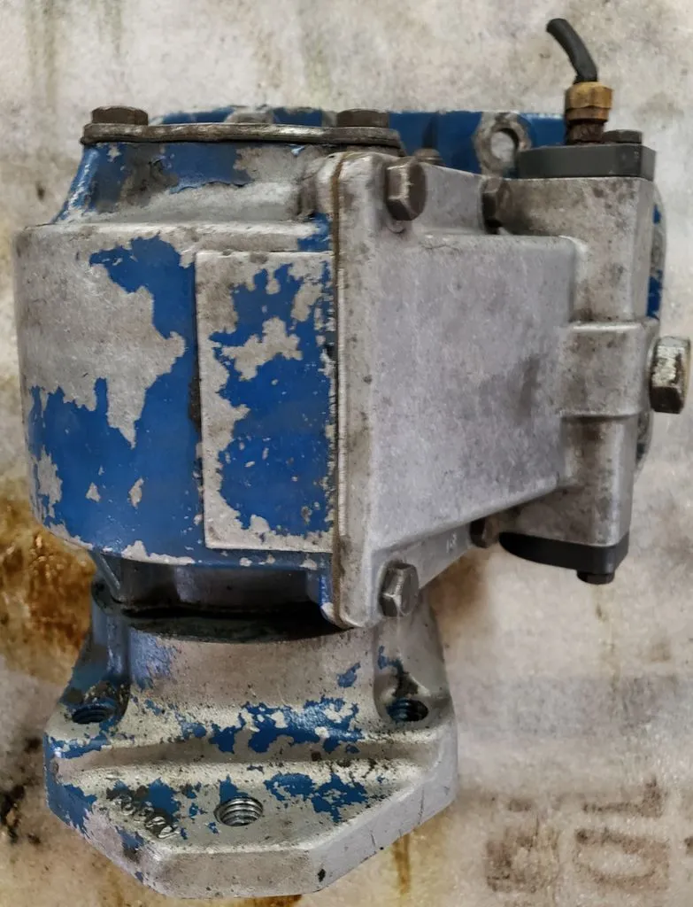 Muncie brand power take-off unit without P/N tag, thought to be TG8S series. Has internal receiving port rather than external shaft. 8 hole mounting base.