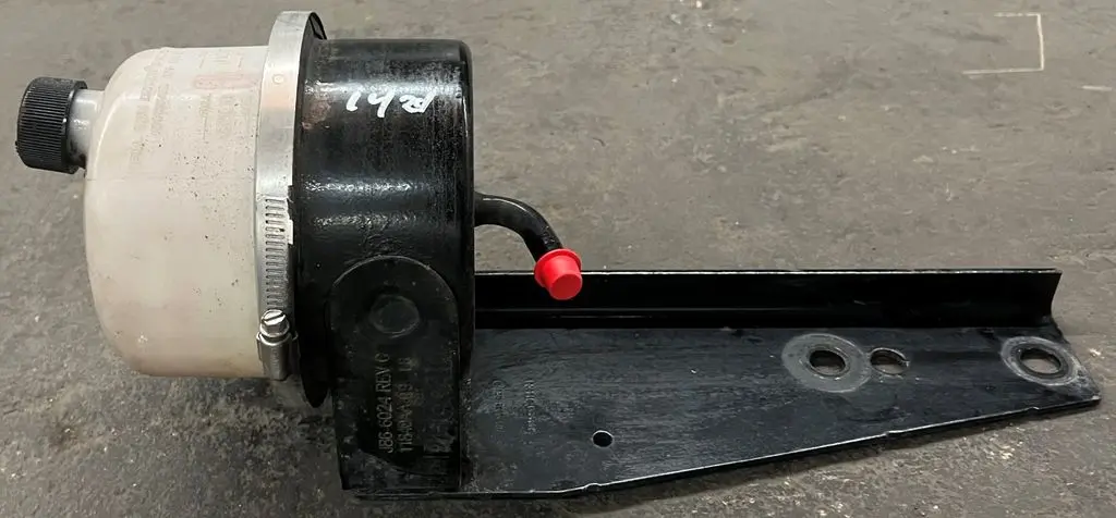 Plastic power steering reservoir with mounting bracket pulled from a 2019 Peterbilt 567 with a PACCAR MX13 engine, run for only 53,037 miles non-wrecked. Reservoir is in good used condition. Comes as pictured. OEM P/N J86-6024 REV C
