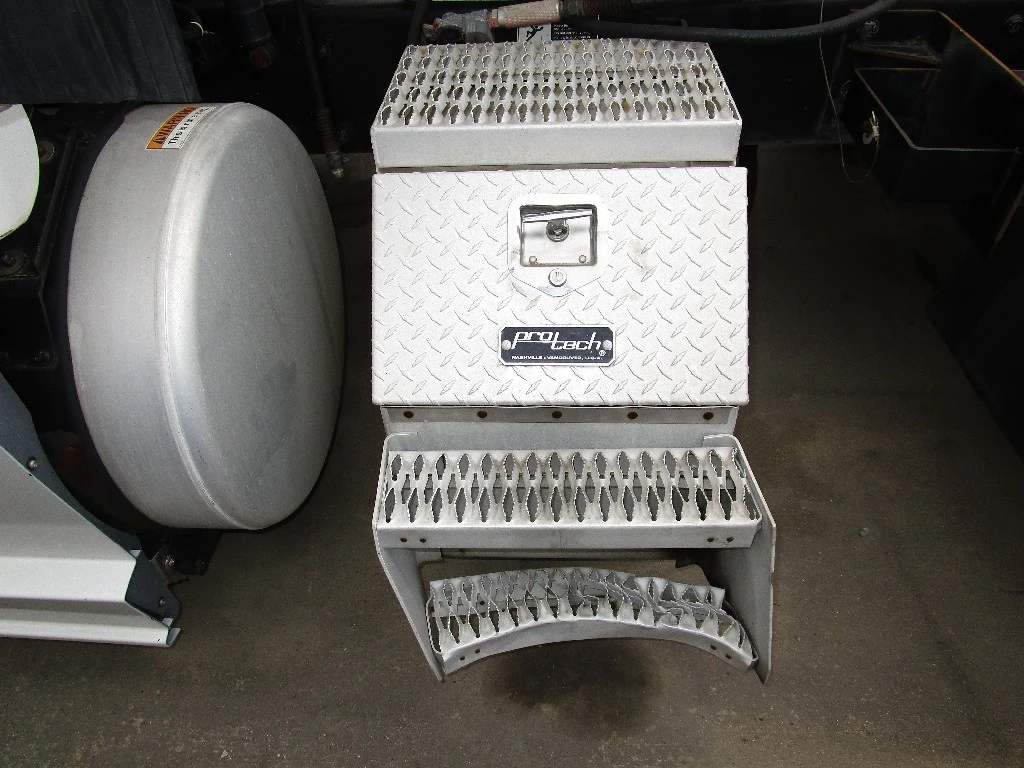 USED: USED USED ALUMINUM PROTECH TOOL BOX/FRAME MOUNTED/18IN WIDE X 241/2 IN TALL/STEPS ARE BENT