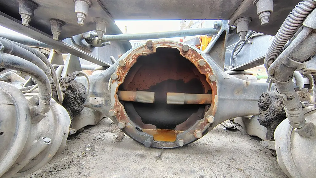 USED: USED Paccar Rear Axle Housing, MR2014P (DX40 Rear), w/ Torque Rod Bracket, 10 Hole Pilot, Air Drum Brakes (Missing LH Drum), ABS, Wide Track, P/N MR2014P3SFRNN7279, Removed From 2019 Peterbilt Flex Air Suspension.