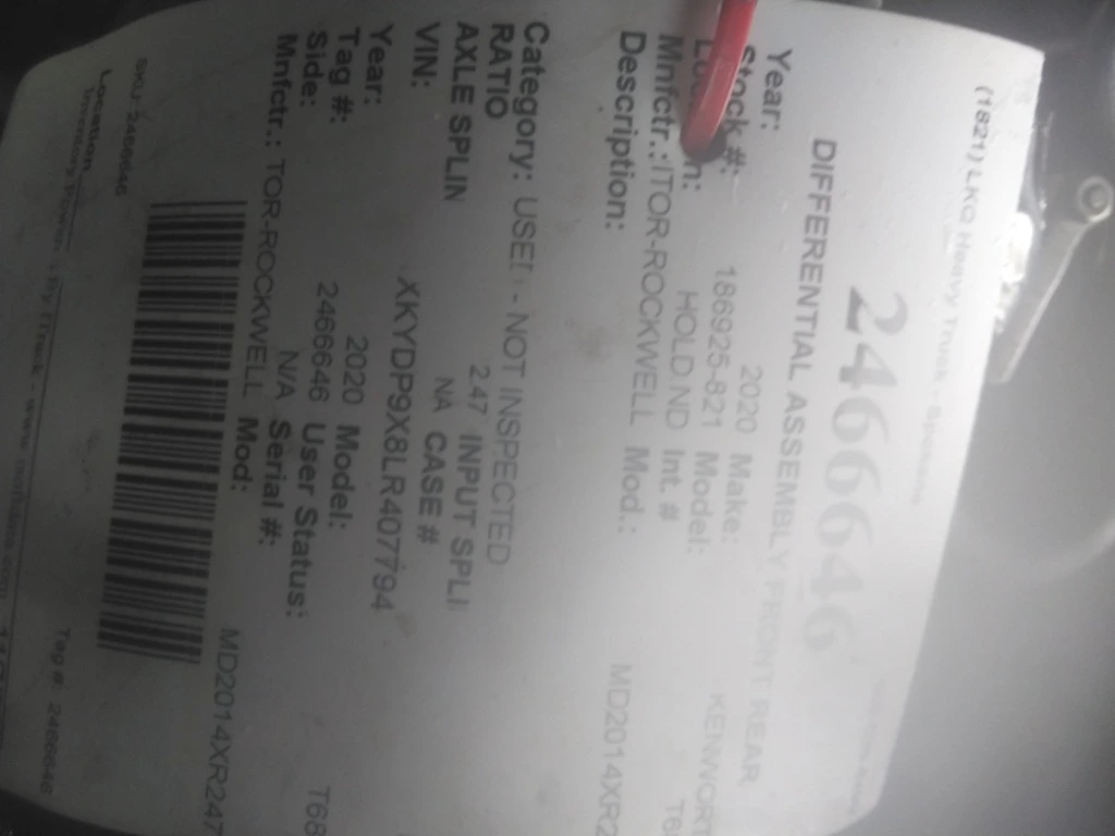 2020 PACCAR MV2014PR247 DIFFERENTIAL ASSEMBLY FRONT REAR