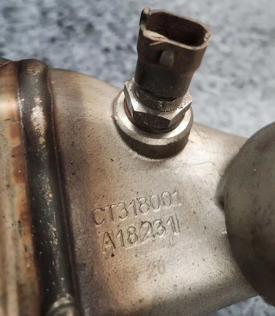Used EGR cooler for PACCAR MX11 pulled from a 2017 Peterbilt 320 run for 113K miles. Appears to be in very good condition, see pictures. OEM part number 2037340. Includes components pictured (however sensor is not guaranteed and may have damage/functionality issues from storage & handling). No core charge or exchange.