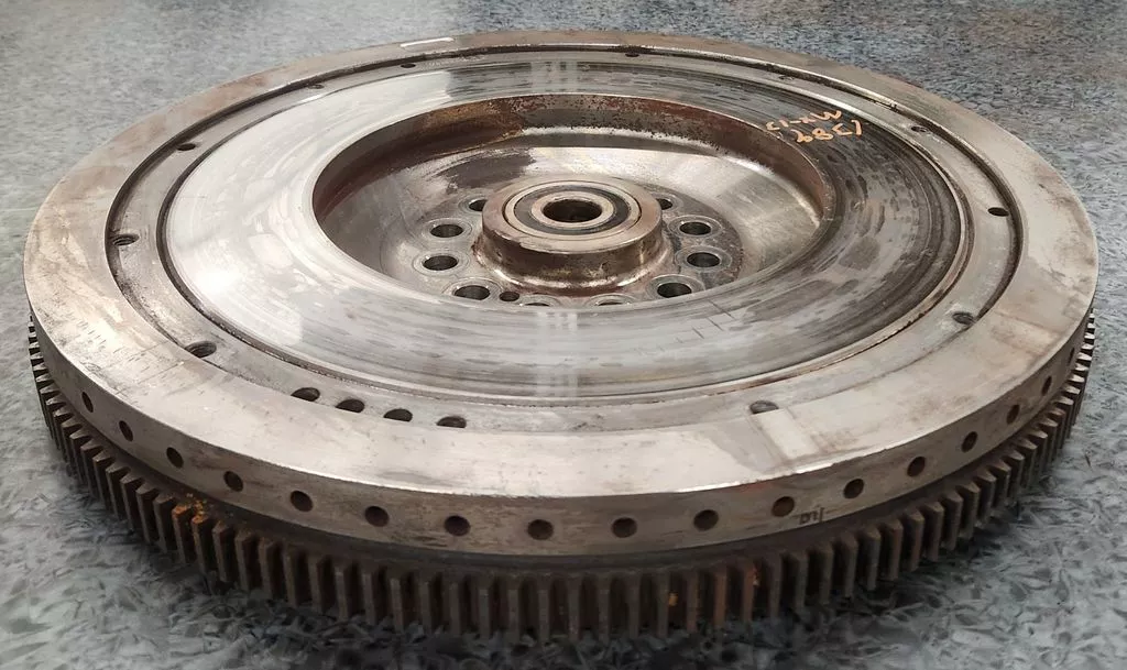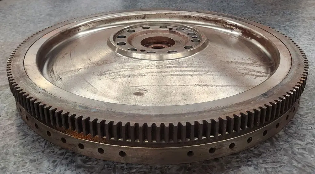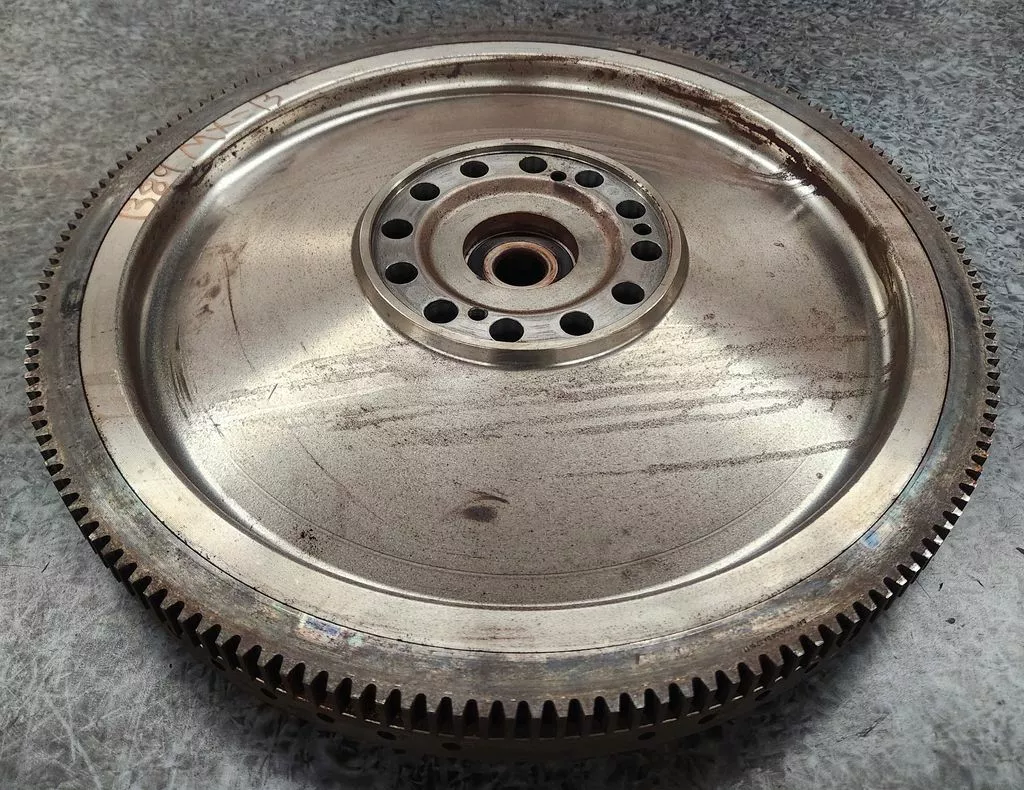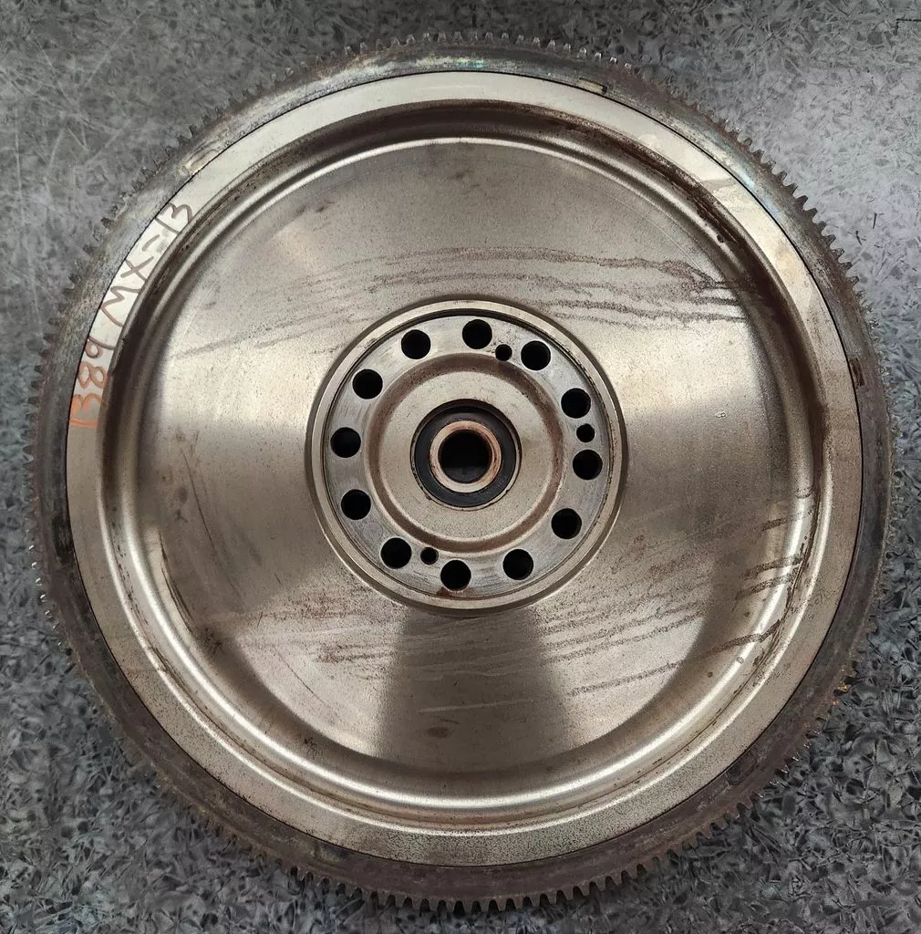 MX13 flywheel pulled from a 2019 Kenworth W900 run for 127K miles, non-wrecked. 10 inch bore, 15 clutch, 1 inch ring gear. Small signs of wear, may (or may not) need turned prior to installation.