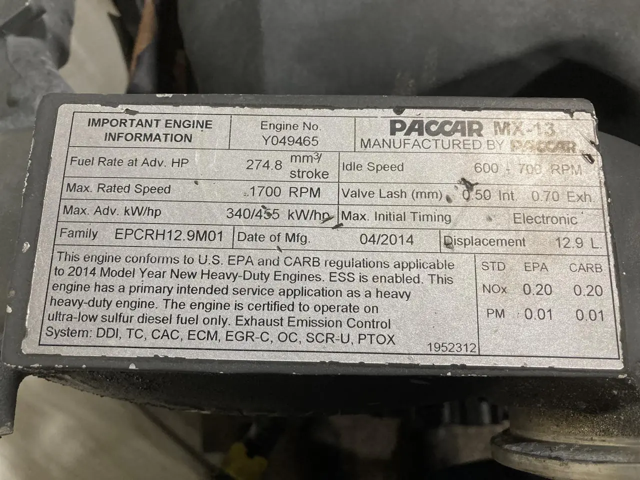 2016 Paccar MX13 Engine Assembly