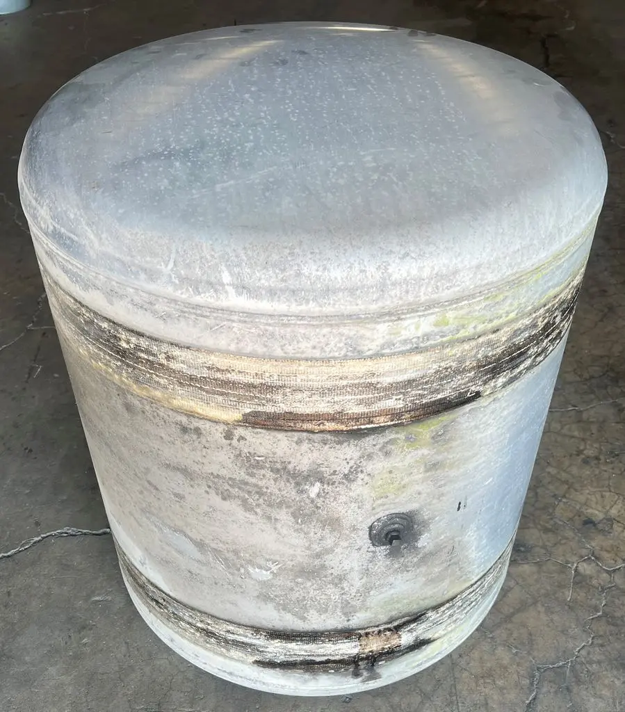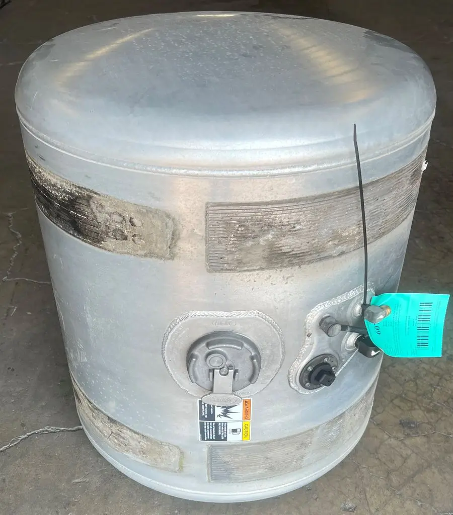 Left side center fill fuel tank pulled from a 2017 Peterbilt 320 run for about 113k miles, non-wrecked. Tank is in great used condition. 60 gallon capacity, tank measures 24" weld-weld with a 26" diameter.