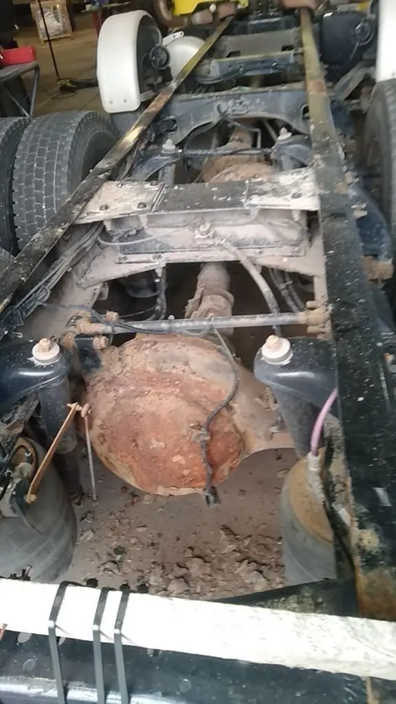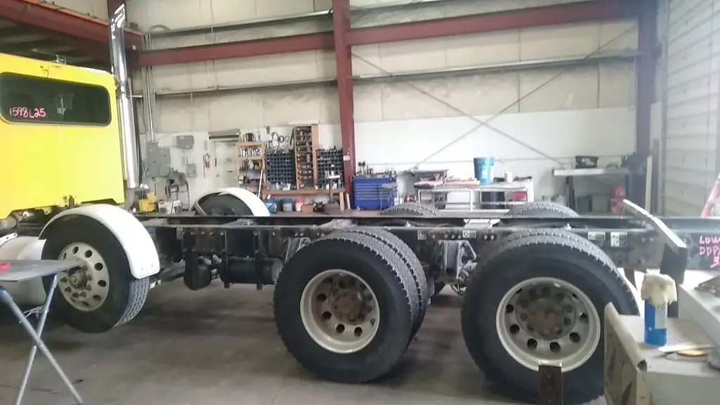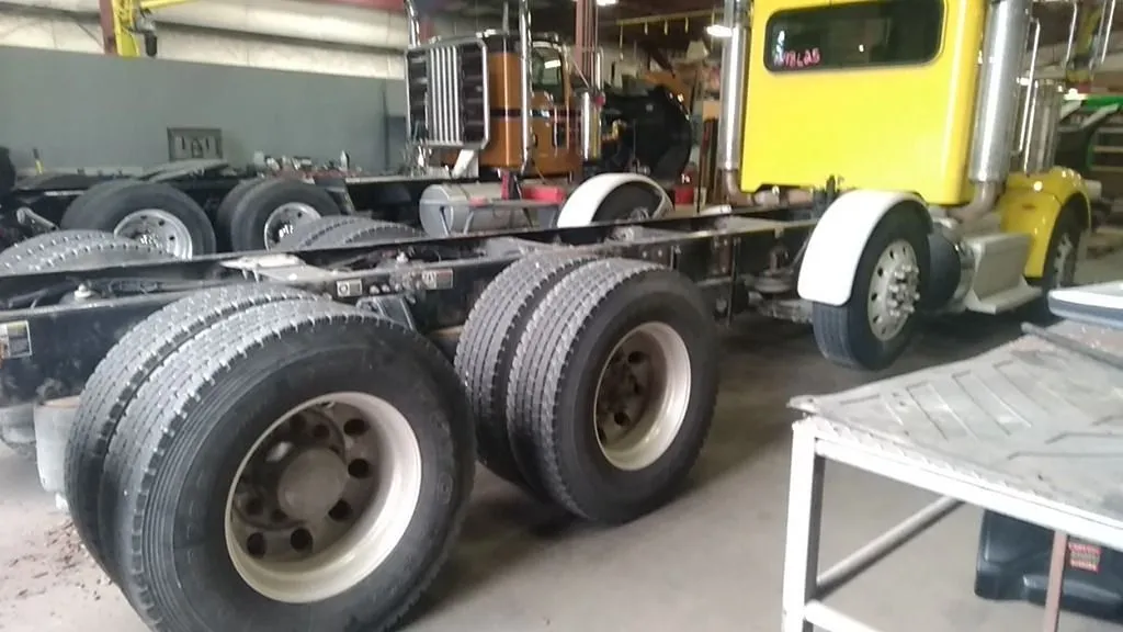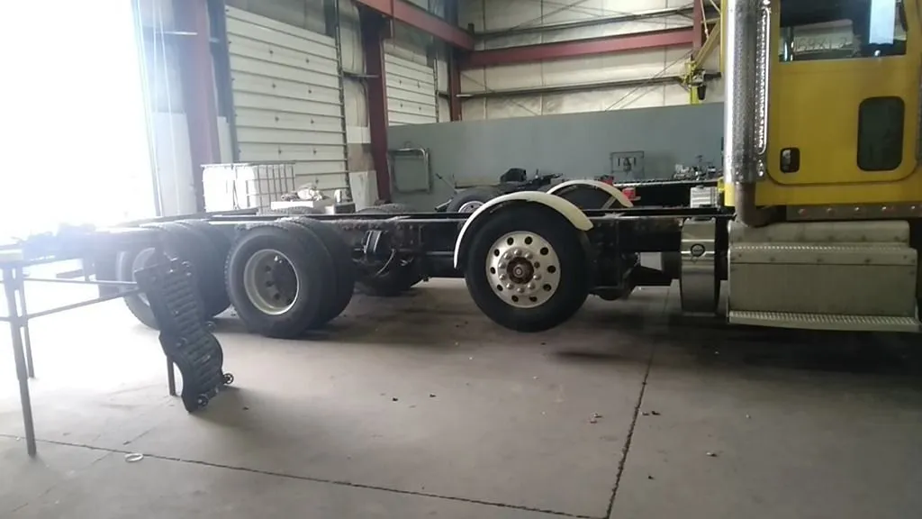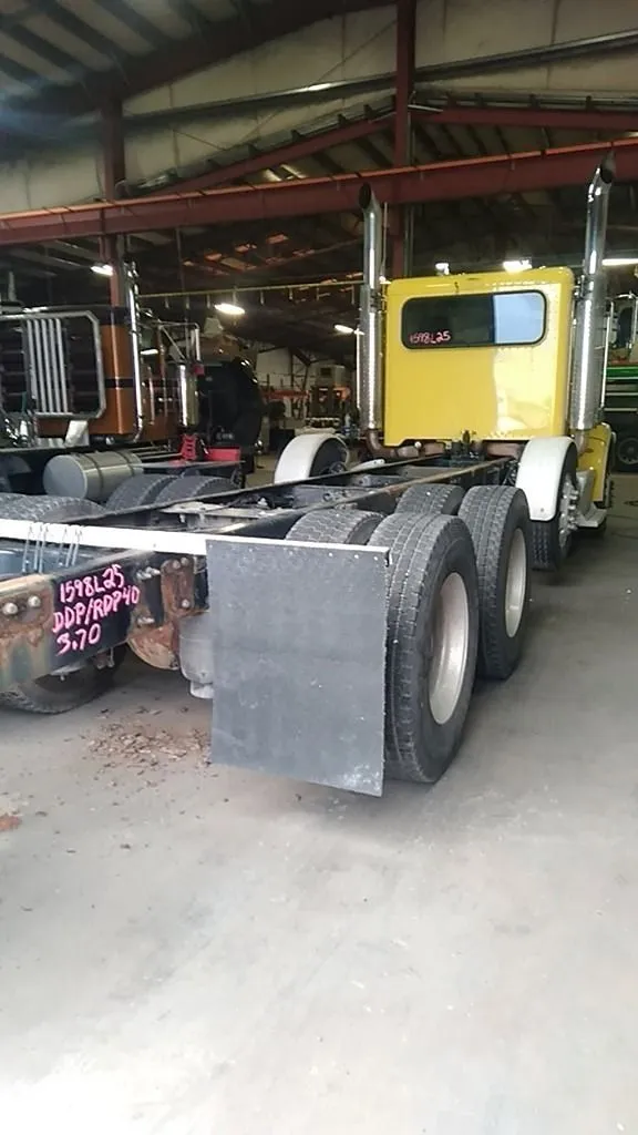2014 Peterbilt 367 Paccar MX-13 500 HP 589,381 miles, RTLO18918B Transmission. Eaton DDP/RDP40 3.70 double lockers on Pete Low Air Ride. 13560# Steer axle. 11R22.5 tires and wheels. Single Watson Chalin 13K tag axle. Single 135 gallon drivers side fuel tank. Bumper dented drivers side, pushed back on passenger side. Rear differential housings have rust scale.