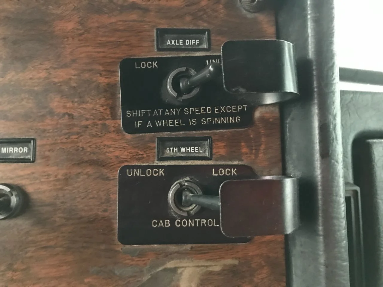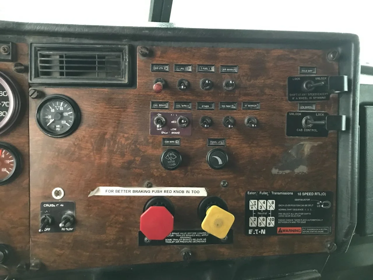USED: USED AIR PSI, CRUISE CONTROL X2, HEADLIGHTS, CL LIGHTS, FUEL, POWER MIRROR, ENGINE BRAKE X2, ETHER, ENGINE FAN, MIRROR HEAT, WASH-WIPE, PANEL LIGHTS, AXLE DIFF LOCK/UNLOCK, FIFTH WHEEL UNLOCK/LOCK