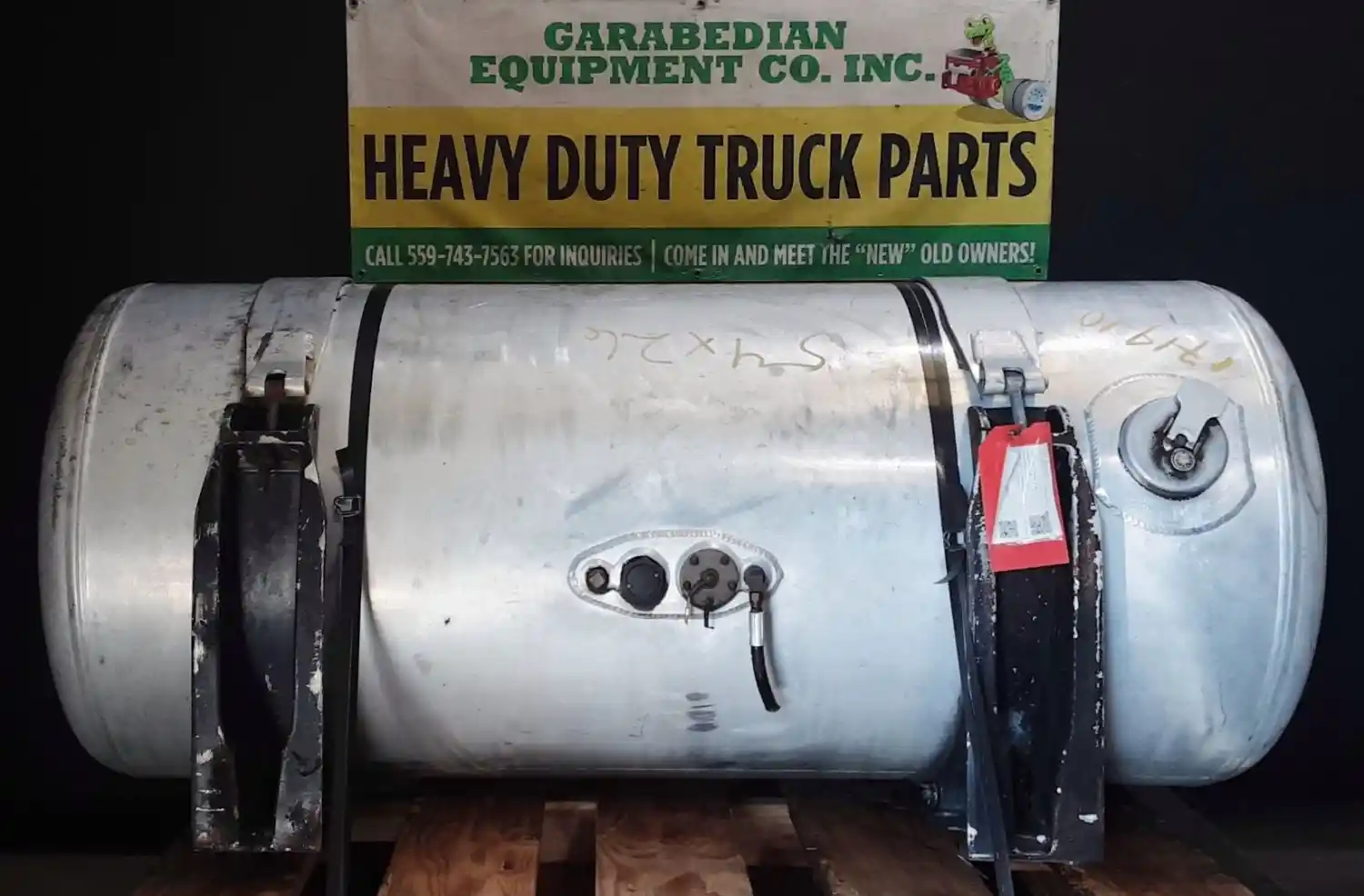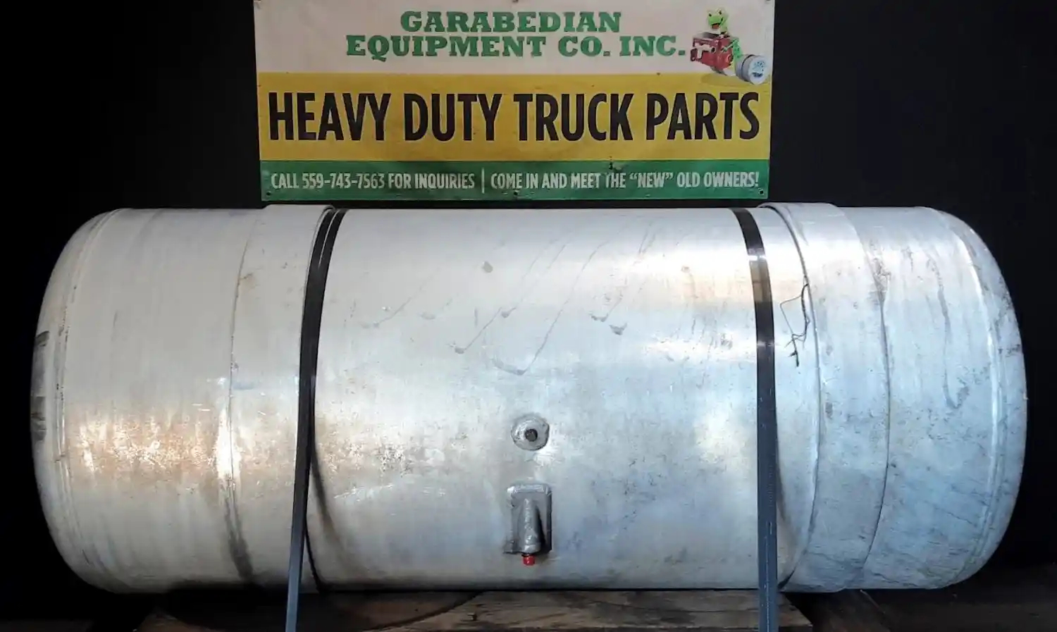Used: Used Passenger Side RH Fuel Tank, 54"L x 26"Dia, 120 Gallon Capacity, Rear Fill, w/ Straps & Brackets. Dent On Endcap.