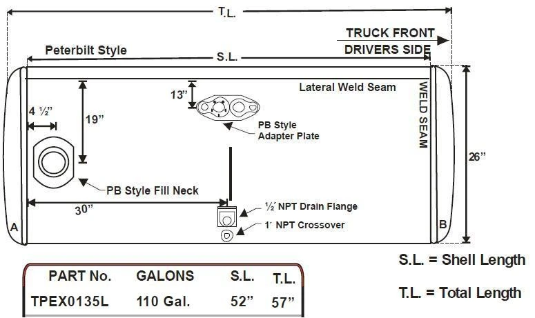 NEW - TANK ONLY: NEW - TANK ONLY 2006 AND OLDER PETERBILT 125 GAL. FUEL TANK 26" X 57" DRIVER SIDE REAR FILL