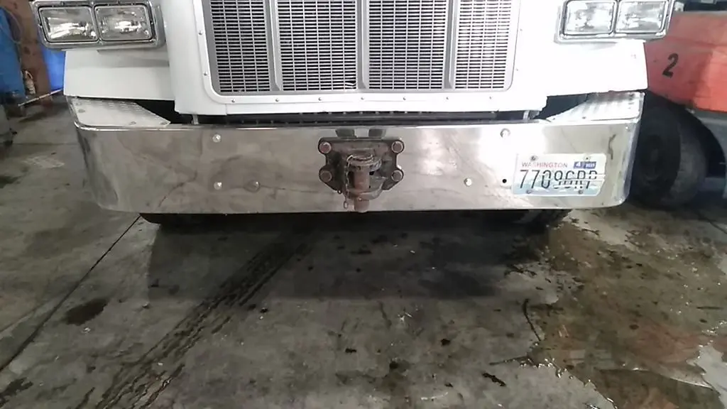378 SBA chrome bumper with bolt holes for center pull. Hitch sold separately. Usable condition.