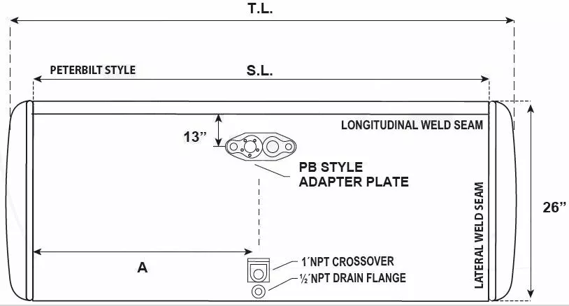 NEW - TANK ONLY: NEW - TANK ONLY 2006 AND OLDER PETERBILT FUEL TANK 26" X 65" 135 GAL WITH NO NECK.
