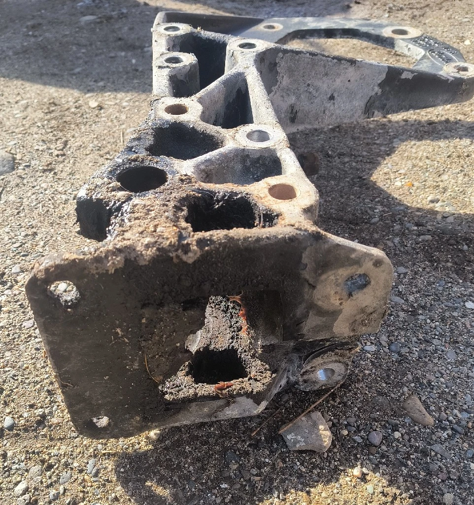 USED: USED 02-03115M001R BRACKET-FRONT SPRING DRIVE REPLACES 02-02516M001R, CAST# 02-02516R, HAS BOLT STUCK FROM BOTTOM BUT WILL STILL BOLT TOGETHER FINE