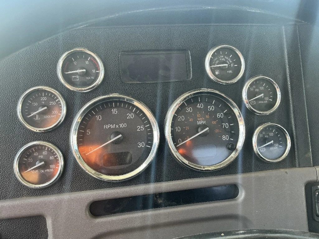 USED: USED 2013 Peterbilt 384 Instrument Cluster, MPH, RPM, WaterTemp, Oil Presure, Battery Voltage And Air Tank Pressure Gauges.