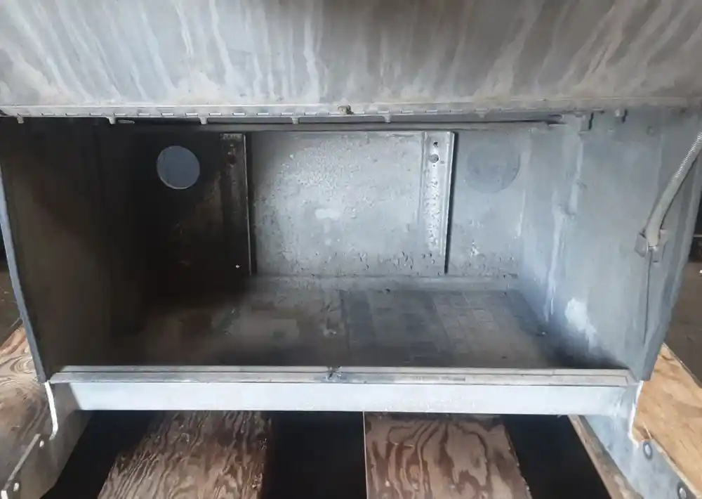 Used: Used Driver Side LH Aluminum Battery Box, 29.5"L x 13"W x 14"H, 4 Battery Capacity. Includes Air Tank. Missing Bottom Step