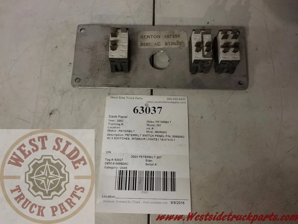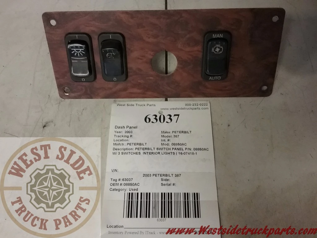 Used: Used PETERBILT SWITCH PANEL W/ 3 SWITCHES INTERIOR LIGHTS ( 16-07418 ) WORK LIGHT ( 16-07418 ) FAN SWITCH 16-07417
