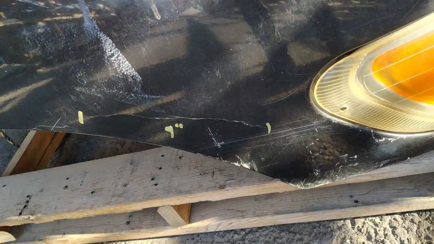 Used: Used 2010 Peterbilt 387 Hood, Complete, SBA, 57"L, Includes Mirrors. Small Crack On Bottom Of Grille, 9" Crack On RH Fender, Exposed Fiberglass On LH Rear Edge, Small Crack Near RH Headlight, Paint Chipping Around LH Headlight.