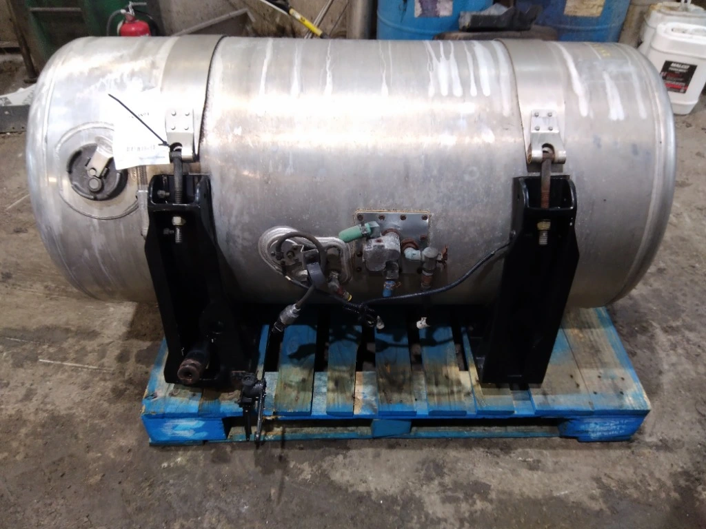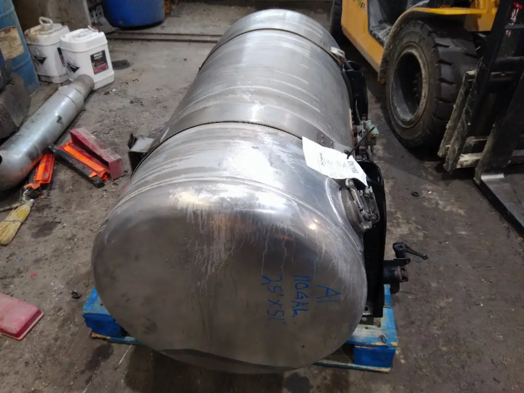 USED - W/STRAPS, BRACKETS - A: USED - W/STRAPS, BRACKETS - A USED LEFT/DRIVER SIDE FUEL TANK W/STRAPS OFF A 2020 PETERBILT 579. 110 GALLONS, 51" LENGTH, 25" DIAMETER, ALUMINUM MATERIAL.