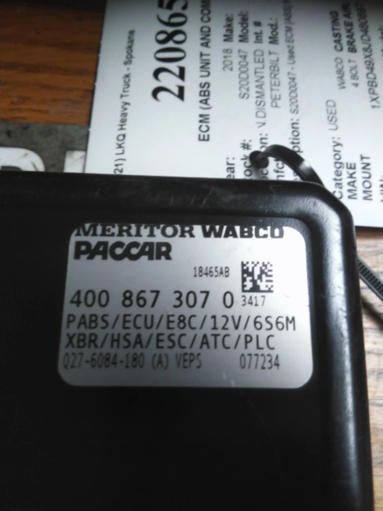 USED: USED S20D0047 - Used ECM [ABS] from a 2018 Peterbilt 579