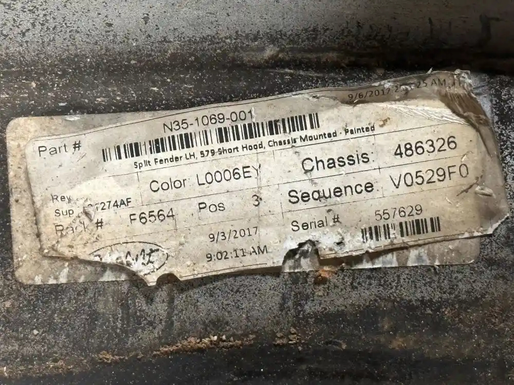 (Used) 2018 Peterbilt 579, FENDER EXTENSION- Part Number: N351069001, Side: Driver Side, Color: White, Material: Fiberglass, Light Scratches!! Reference images for condition. For more information about this item, give us a call. We ship Worldwide! (CRG HEAVY TRUCK PARTS) 929 W PULASKI HWY ELKTON, MD 21921