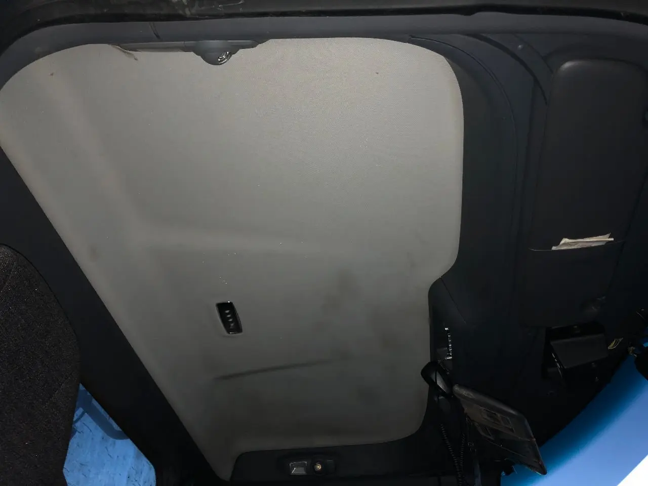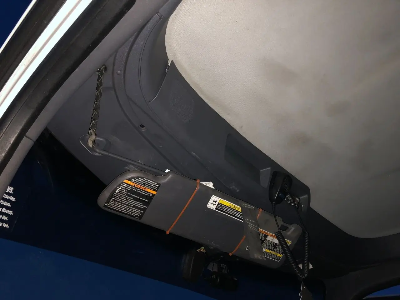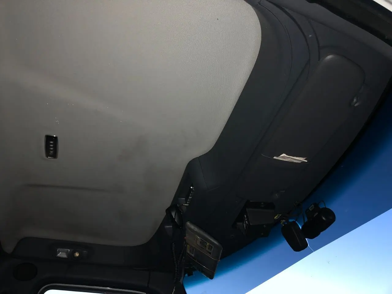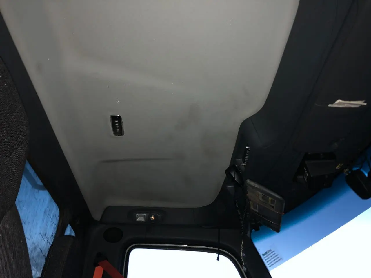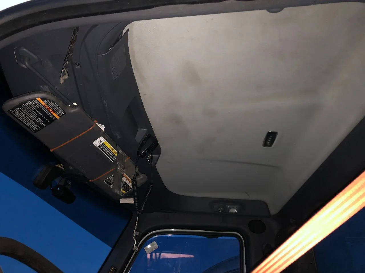 USED: USED HEADLINER ASSEMBLY W/ LIGHTS, INTERIOR SUN VISORS & SPEAKERS, FROM WINDSHIELD AND ABOVE DOORS TO BACK WALL BY WINDOW, METAL SUB FRAME NOT INCLUDED