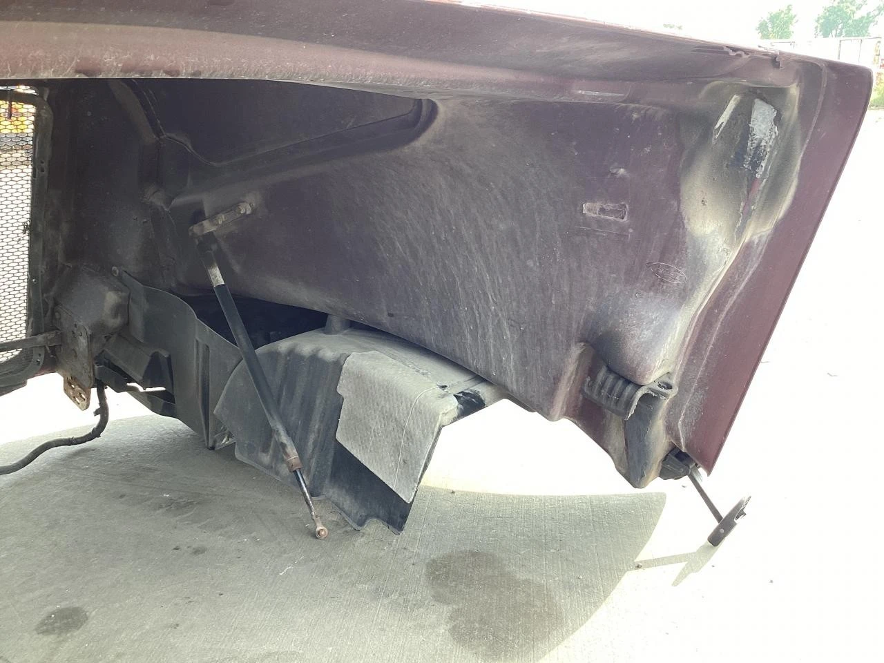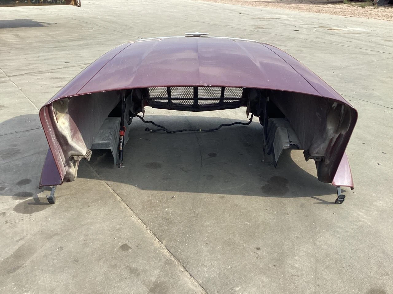 USED: USED COMPLETE HOOD, SOME PAINT CHIPPING UNDER GRILLE, CENTER SECTION UNDER GRILLE IS CRACKED, SCRATCH ALONG DRIVER SIDE FENDER, PATCH JOB INSIDE, TOP EDGE HAS SOME CHIPS IN IT. WIRE HARNESS NOT INCLUDED.