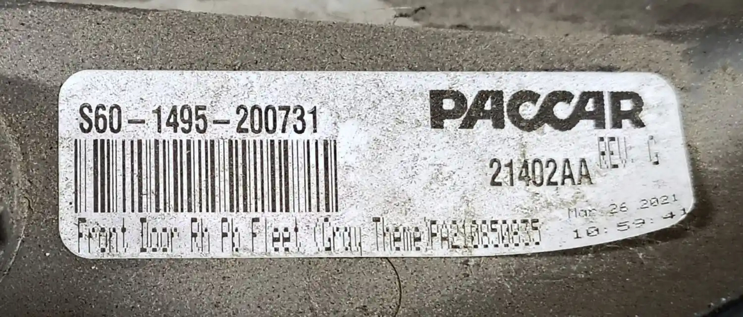 Used: Used 2022 Peterbilt 579 Passenger Side RH Interior Door Panel, P/N S60-1495-200731. Has A Few Scratches.