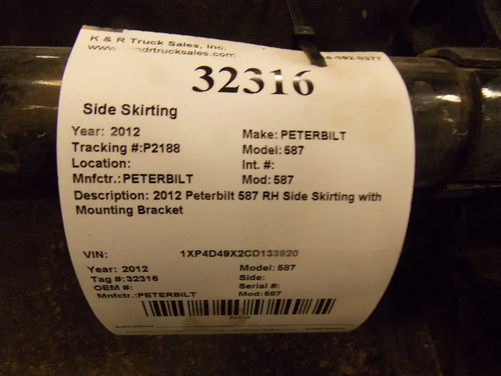 USED: USED 2012 Peterbilt 587 RH Side Skirting with Mounting Bracket