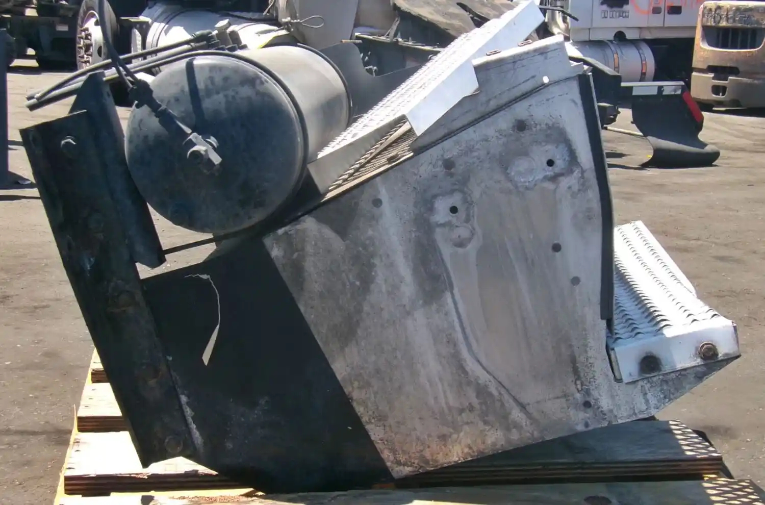 Used: Used 2012 Peterbilt 587 Passenger Side Tool Box, 29"L x 20"W x 12"H. Bent Lower Step, Top Step Loose.