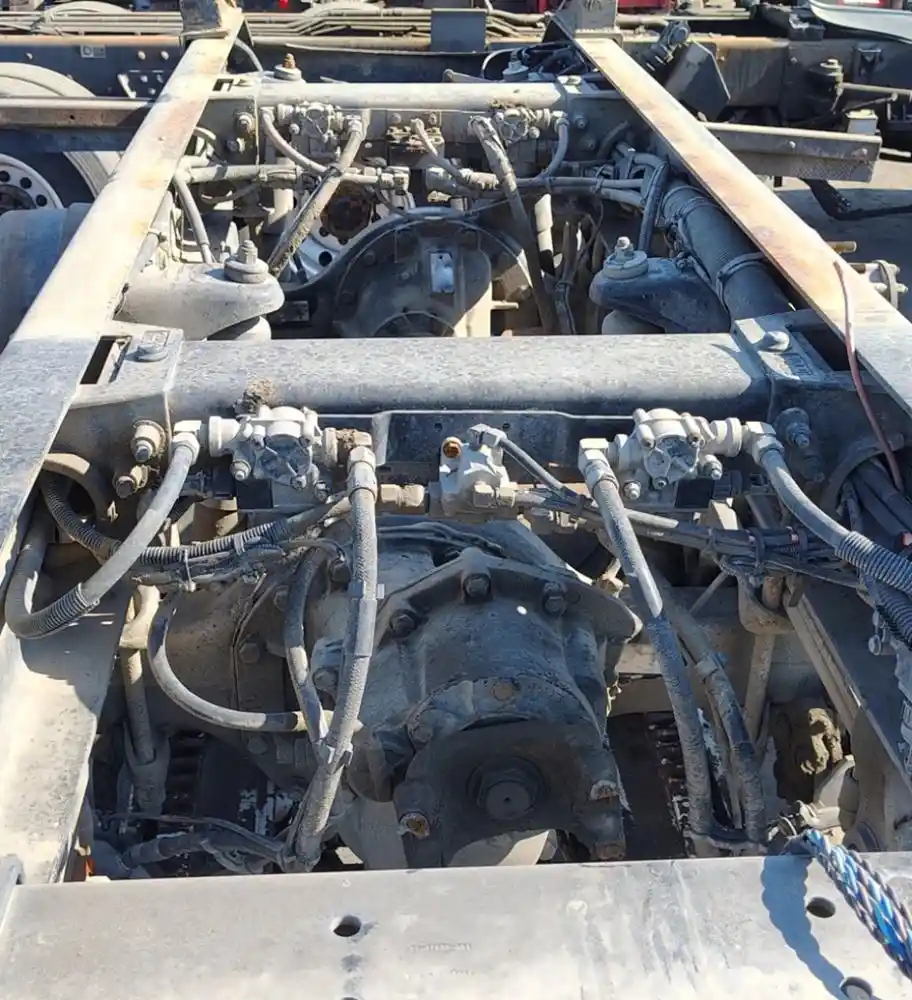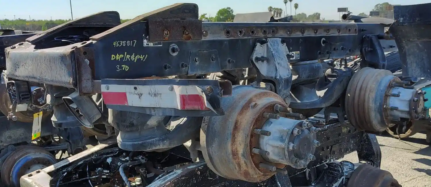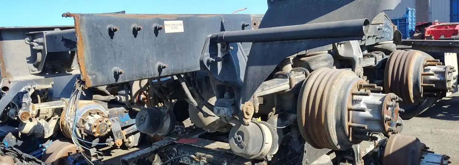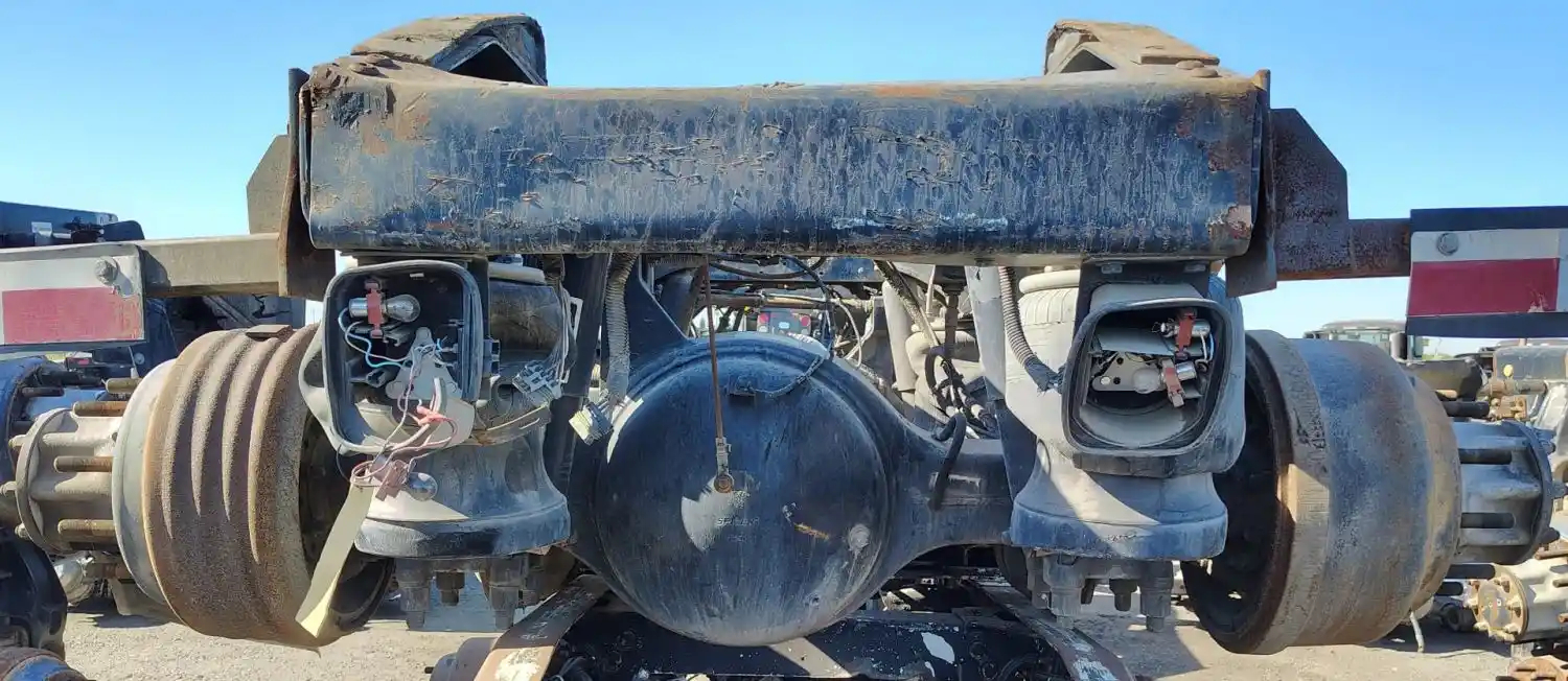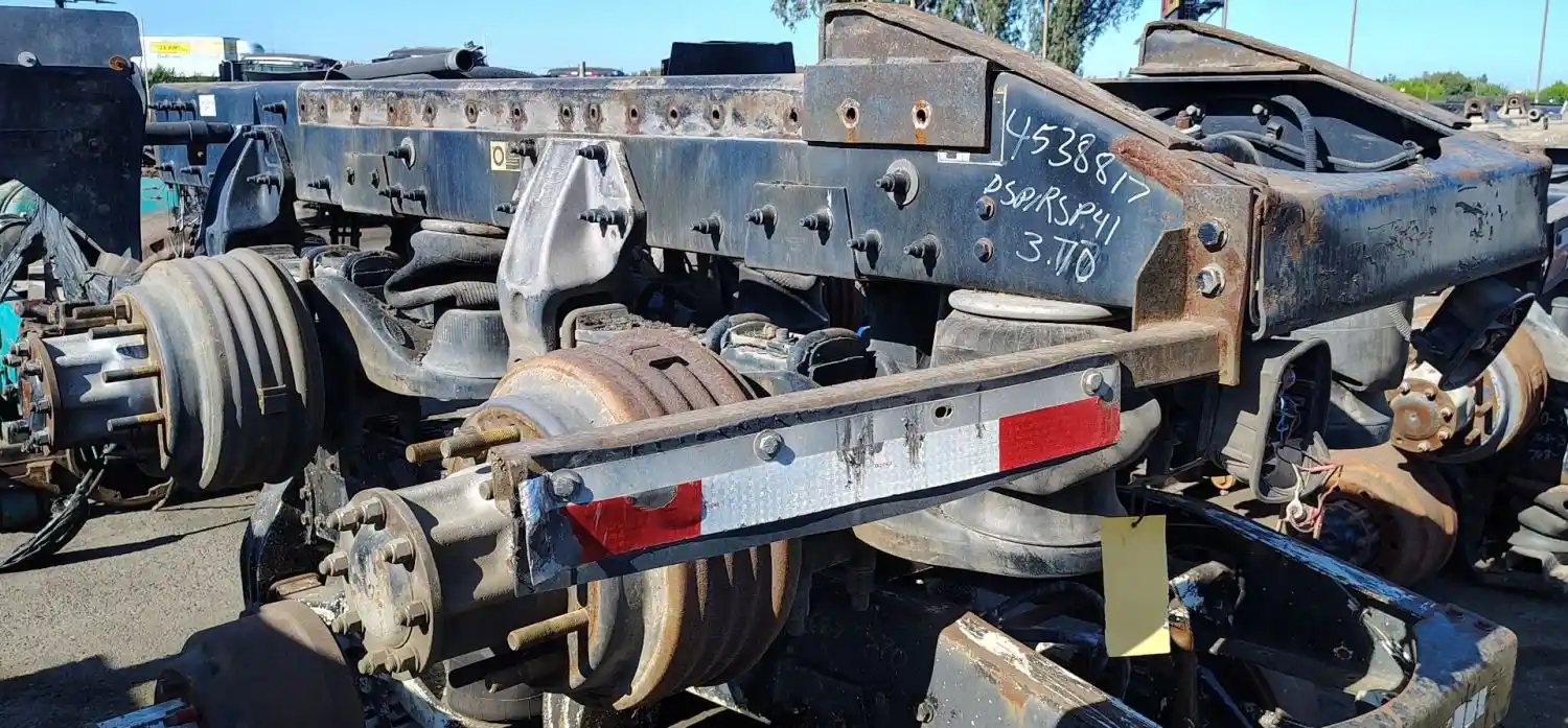 USED: USED Peterbilt Air Leaf 40K Tandem Suspension Cutoff w/ Eaton DSP41/RSP41 - 3.70 Ratio Diffs & Housings, 10 Hole Pilot, Air Drum Brakes, ABS, P/N's 514538 (682971), 321066, 511330 (676035), 321078.