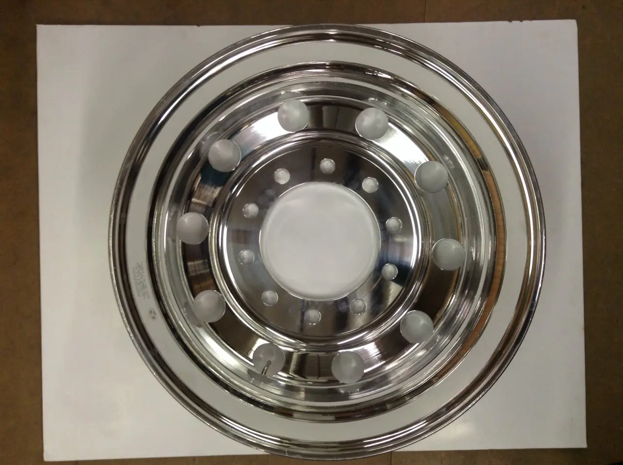 NEW: NEW 22.5 X 9.00 ALUMINUM EXTRA POLISH BOTH SIDES HUB-PILOT WHEEL; 10 BOLT HOLE; 10 - 2.25" ROUND HAND HOLES; ID: