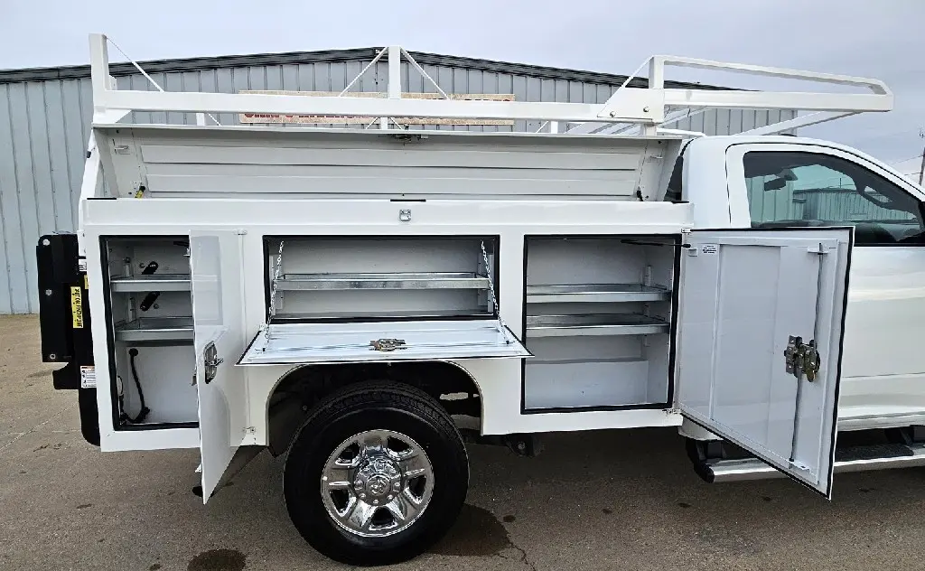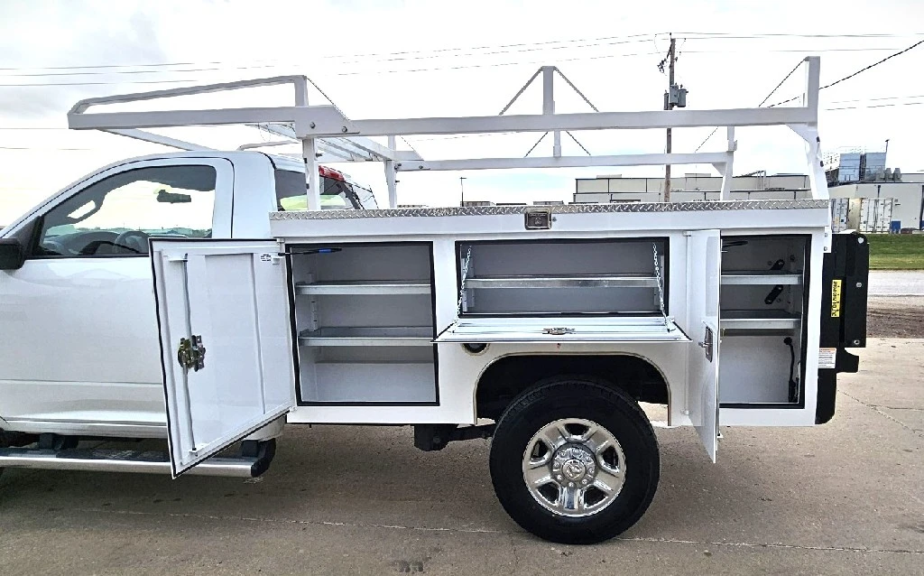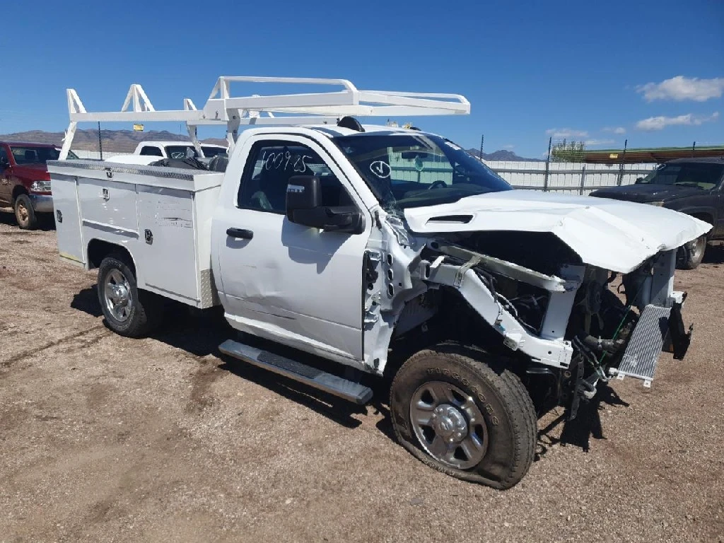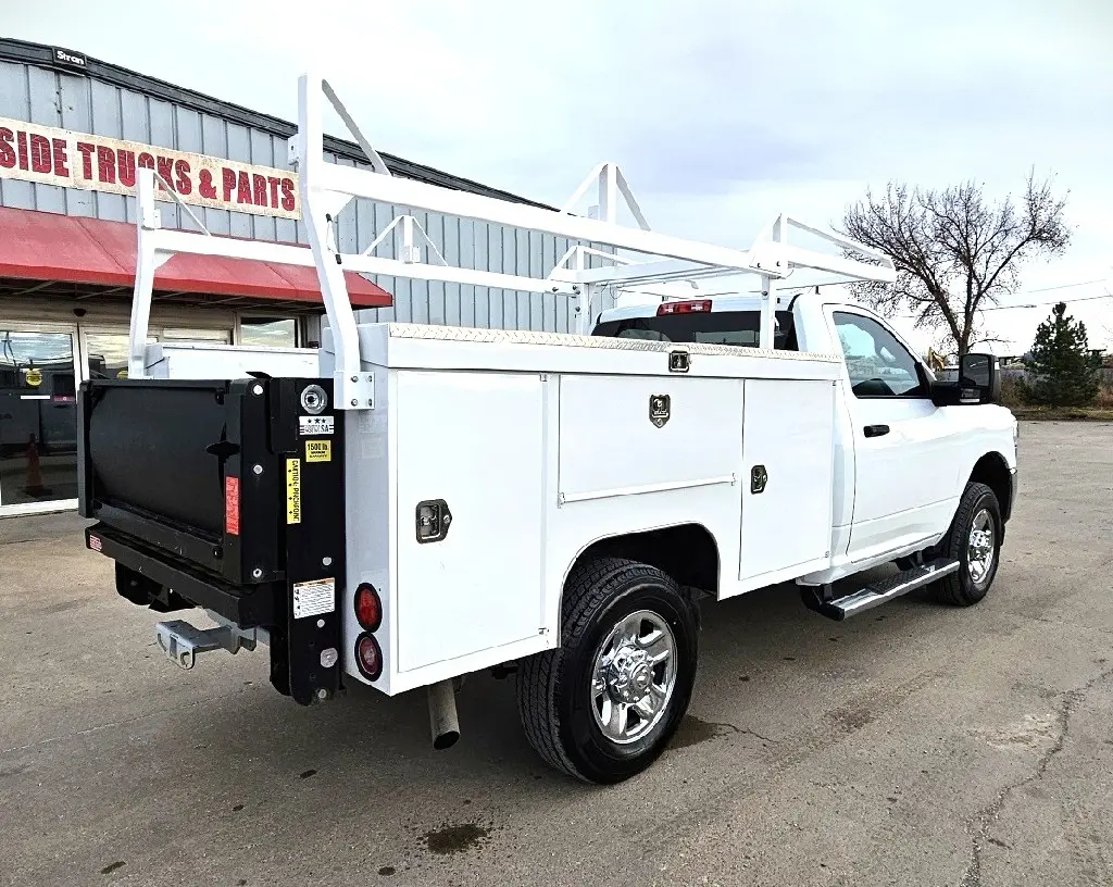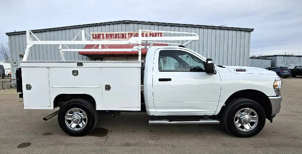2024 RAM 2500 TRADESMAN 4X4 SERVICE TRUCK , 6.4L V-8 GAS , 8 SPEED AUTOMATIC , REAR VIEW CAMERA , 3.73 RATIO , SCELZI 8 FT SERVICE BODY WITH LADDER RACK , 142'' WB , 10K GVW , PUSH BUTTON START , REMOTE KEYLESS ENTRY , TILT STEERING , POWER WINDOWS , LOCKS AND MIRRORS , HD SNOW PLOW PREP , TRAILER BRAKE CONTROLLER , ENGINE BLOCK HEATER , 275/70R18 TIRES LIKE NEW , REBUILT TITLE , 27,316 ACTUAL MILES