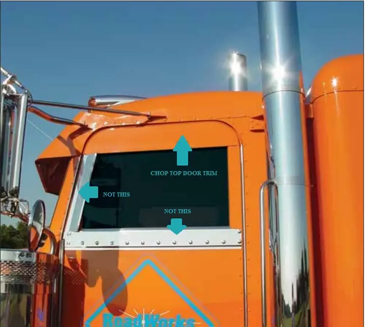 NEW: NEW PETERBILT 5 TOP OF DOOR TRIM (CHOP LOOK), 2005+ SANDED FINISH