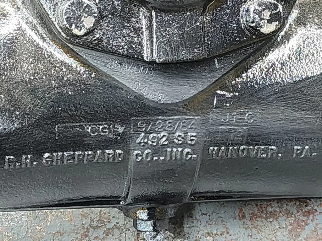 (GOOD USED) R.H. Sheppard Steering Gear Box 482 For Sale, Part # 482 65, 492 35, UK Part # 981358, Australia Part # 247580, Canada Part # 629868, US Patent No. 2830451, 3012543, 3092023, 3195575, Cover Part # 6921512, Other Part # 2917323, 3012543, 329886, 85A4003, SAG5, Stock # 7741 - Transmission Make: N/A - Transmission Model: N/A