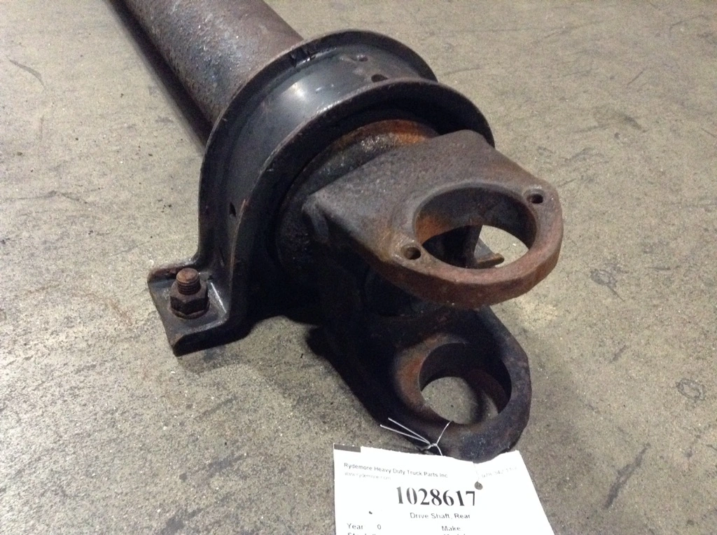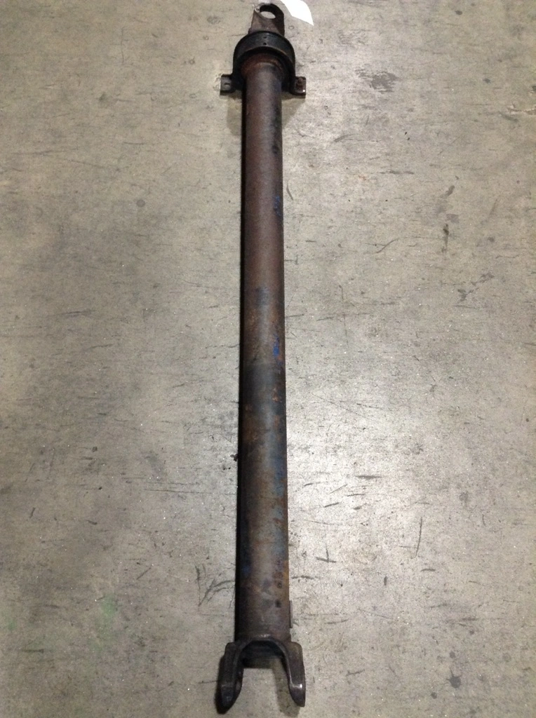 Used: Used Good used take out Spicer 1610 carrier bearing type driveshaft. 56 3/4" center of U Joint to center of carrier bearing. 61 1/4" center of U Joint to center of U Joint. Full circle type U joint on one end and strap/cap type on the other.