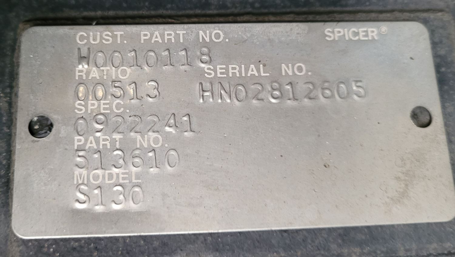 2007 SPICER S130 Rear Rears (Tandem Rear or Single)