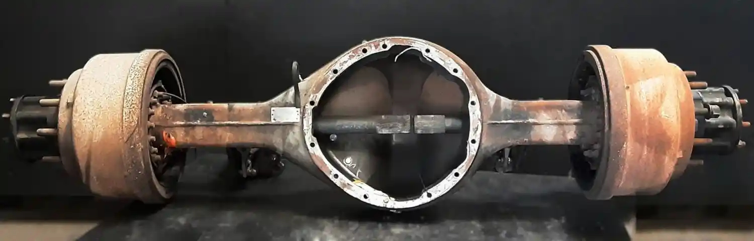 Used: Used Eaton Rear Axle Housing, S23170, 10 hole Pilot, Air Drum Brakes, ABS, 53" Inner Flange To Flange, STD Track, 16 Hole Flange. P/N 323282, S/N U121655762. Removed From Capacity TJ500 Yard Goat.