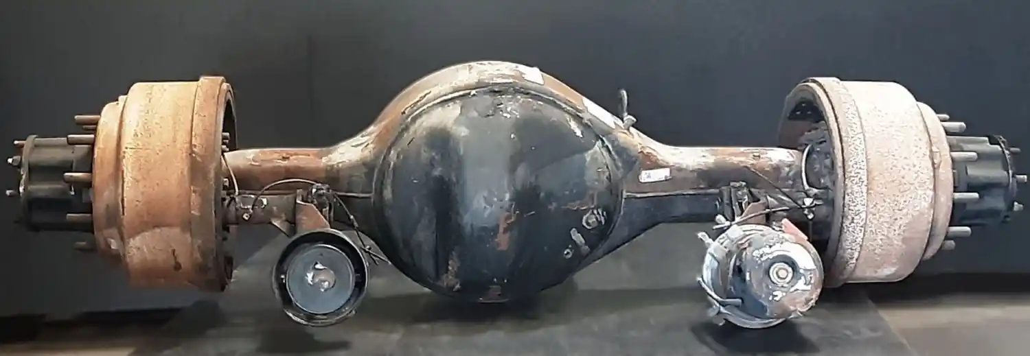 Used: Used Eaton Rear Axle Housing, S23170, 10 hole Pilot, Air Drum Brakes, ABS, 53" Inner Flange To Flange, STD Track, 16 Hole Flange. P/N 323282, S/N U121655762. Removed From Capacity TJ500 Yard Goat.