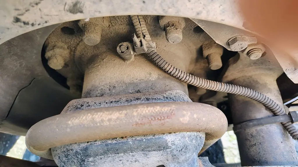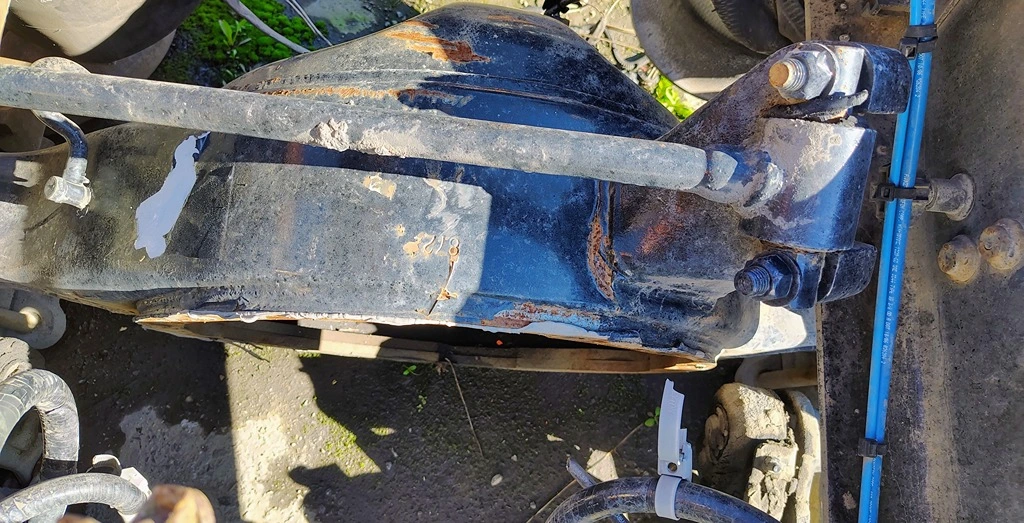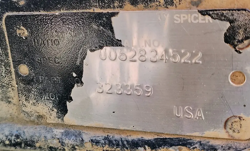 USED: USED Spicer Rear Axle Housing, S23190, w/ Torque Rod Bracket, 10 Hole Pilot, Air Drum Brakes, ABS, P/N 323359. Removed From 2007 Freightliner FAS II Airliner Suspension.