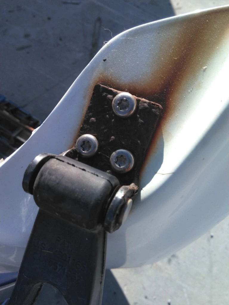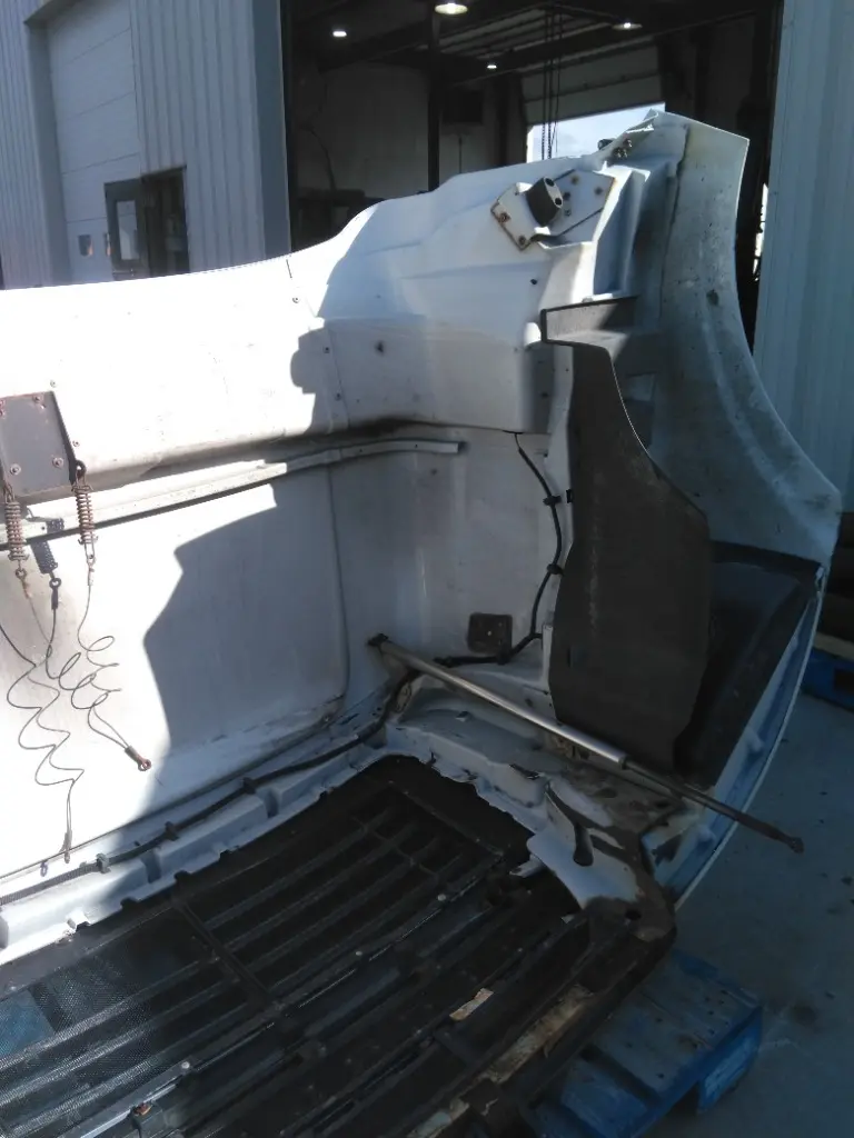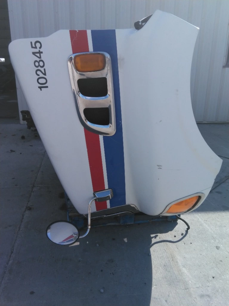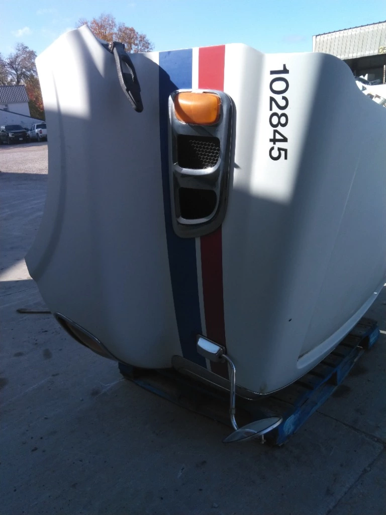 USED - A: USED - A HOOD IN DECENT SHAPE, HAS BROKEN GRILL, WHITE WITH RED AND BLUE STRIPES, STERLING