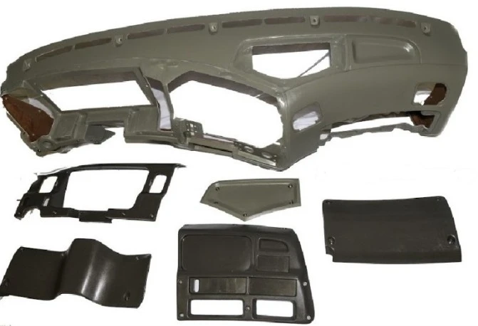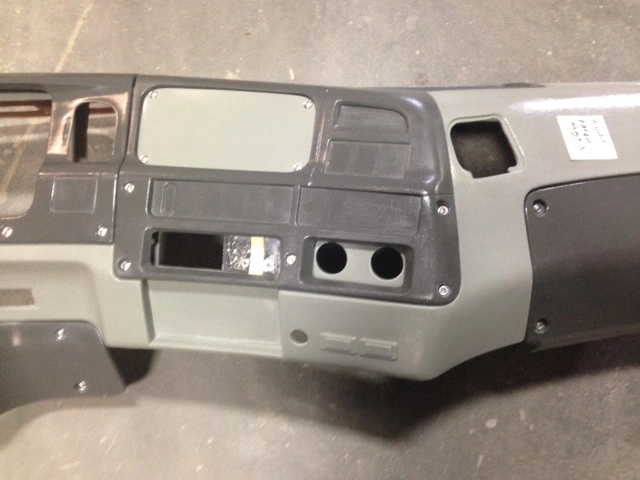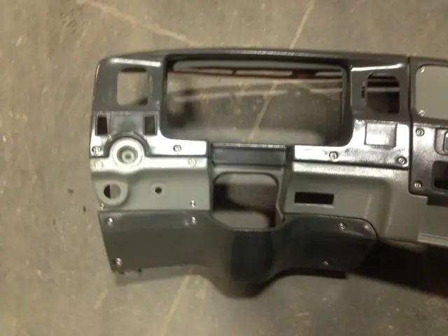 NEW: NEW DASH COVER ONLY, LIGHT GREY WITH DARK GREY INCLUDES MAIN SHELL WITH 5 PANELS AND SCREWS. FOLLOWING NOT INCLUDED AIR VENTS AND ACCESSORIES.