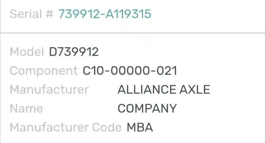 | Axle Make: | Axle Alliance |