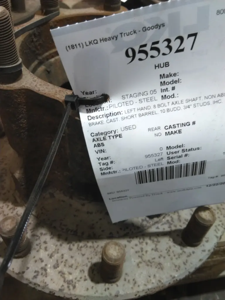 USED: USED LEFT HAND, 8 BOLT AXLE SHAFT, NON ABS, AIR BRAKE, CAST, SHORT BARREL, 10 BUDD, 3/4" STUDS, IHC,