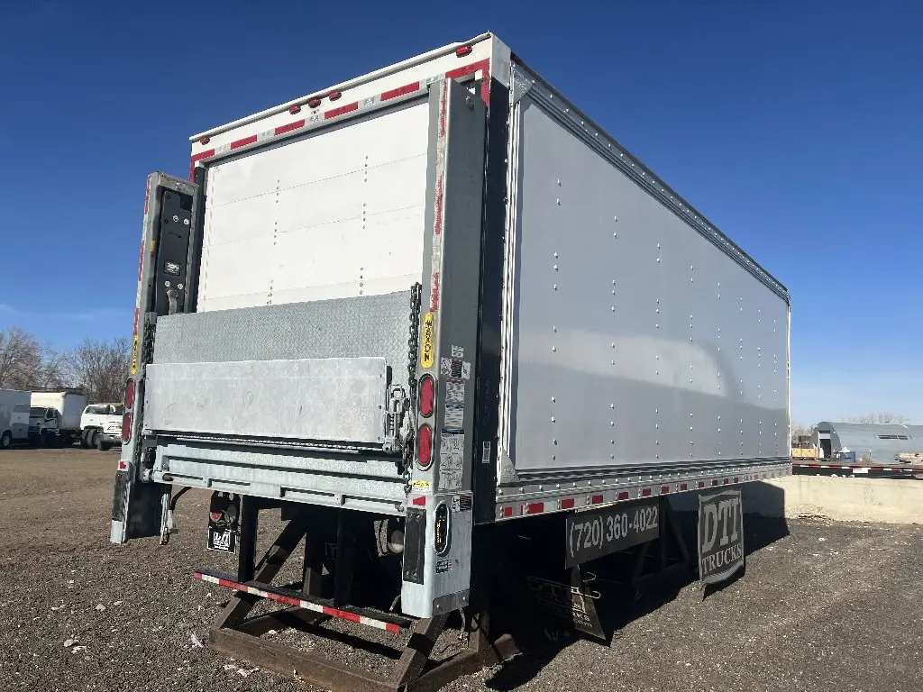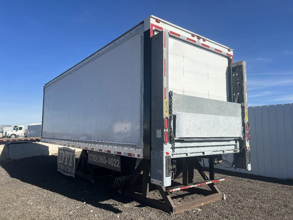 24'L 102"W 91"H Van Body, Duraplate Siding, Aluminum Roofing, Hardwood Flooring, Rear rollup door, 4 Rows of E Track Maxon BMRW 5500LBS 84”L 85”W Aluminum platform Rear Rail Lift Gate. Quality install available, Call DTI Trucks for more information and a shipping quote.