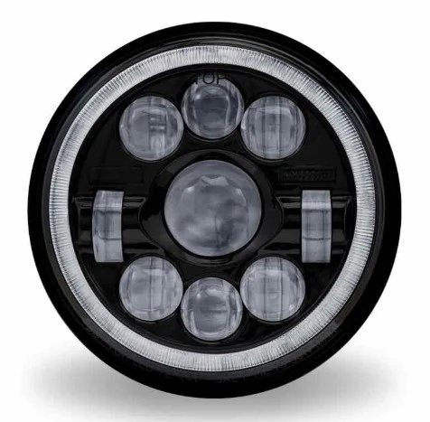 NEW: NEW 7" Round Led Projector Headlight - Black With White Halo (1320 Lumens)