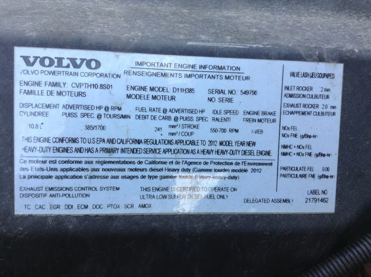 2013 Volvo D11 Engine Assembly