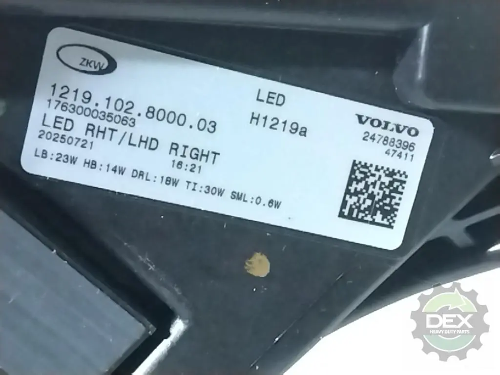 Recycled: Recycled VOLVO HEADLAMP 24788396, RH, HIGHWAY, 2025 NEW MODEL